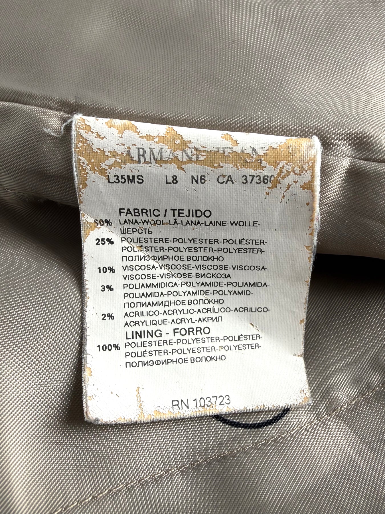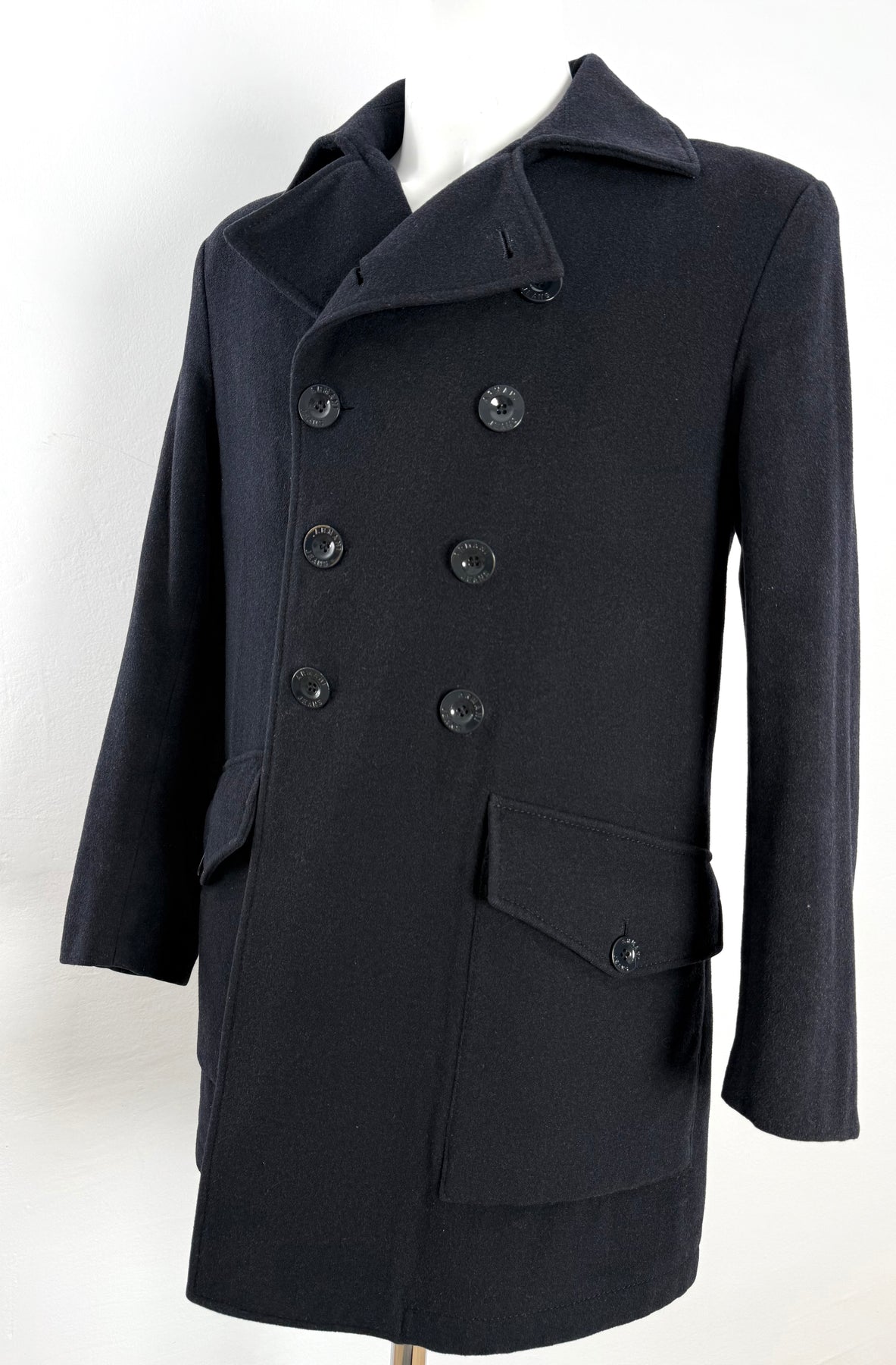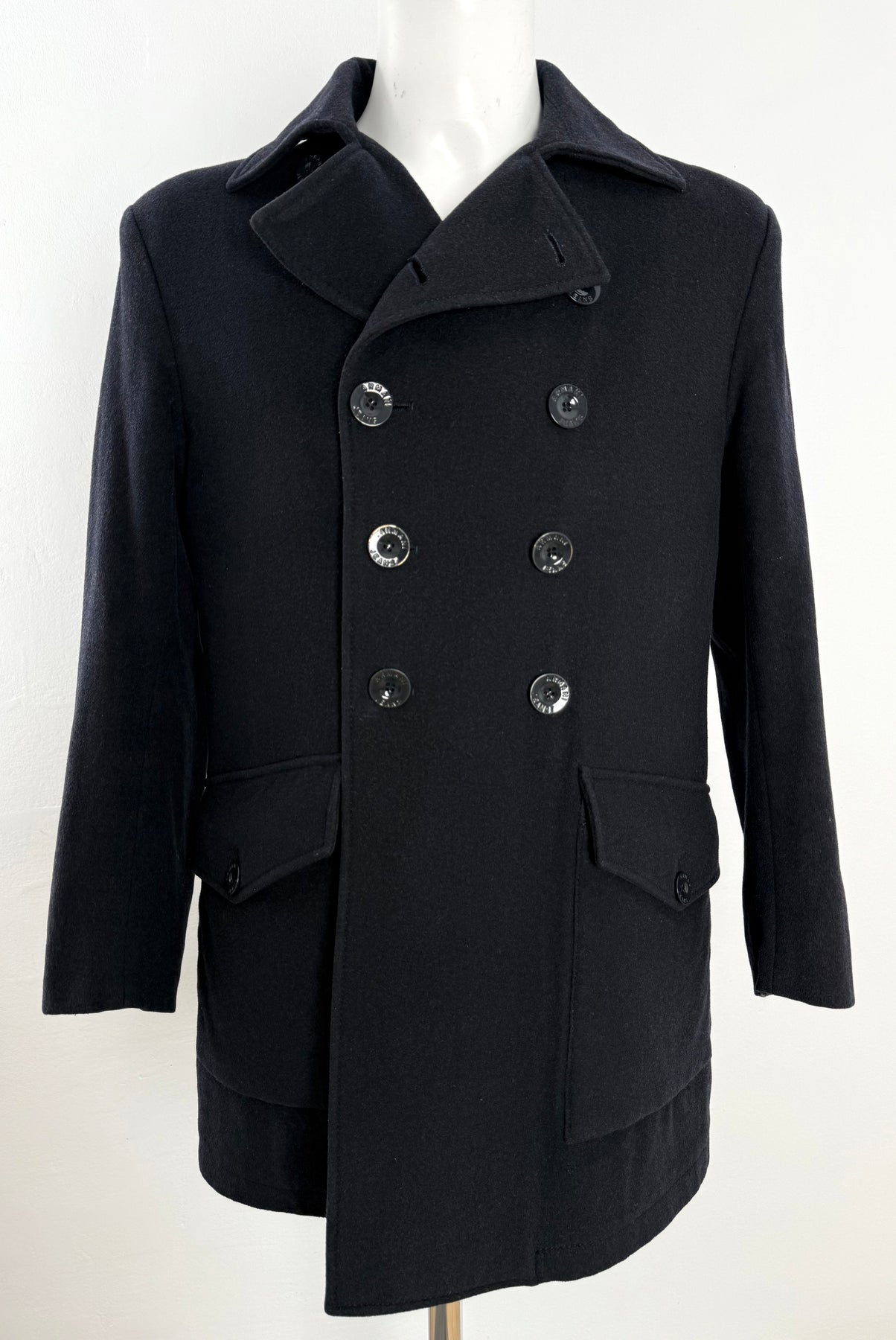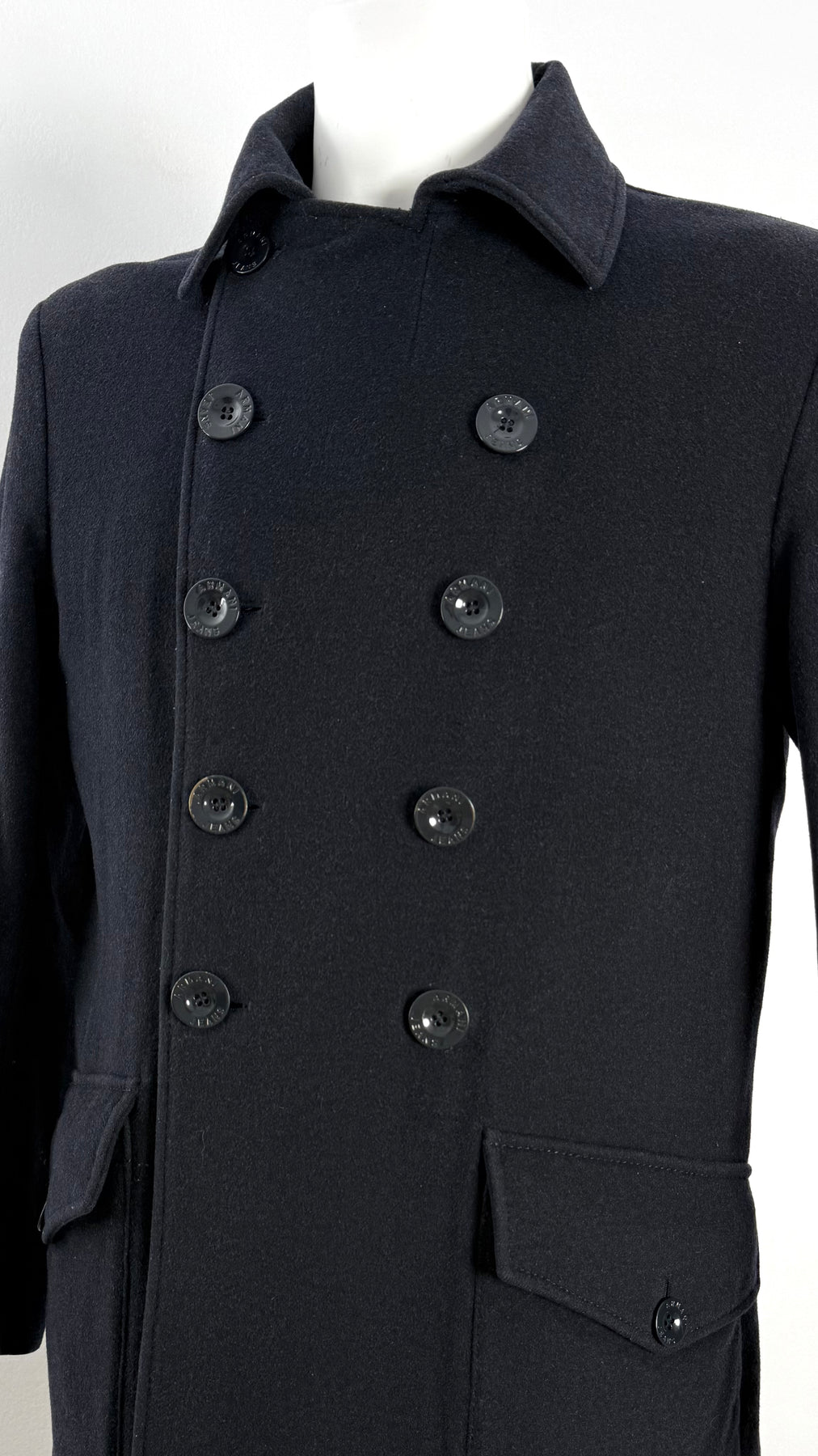 Abrigo Armani Jeans color azul oscuro talla 48 (S) en perfecto estado (prácticamente nuevo con poco uso). Gran calidad de lana, poliéster, viscosa, poliamida y acrílico con forro interior y relleno de poliester, cuenta con todos los botones originales.