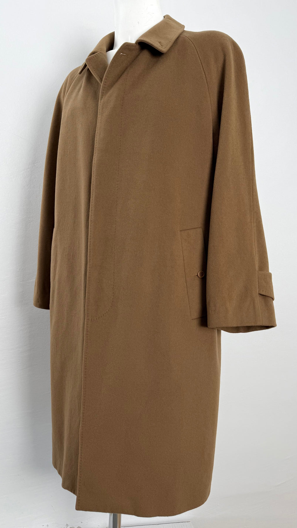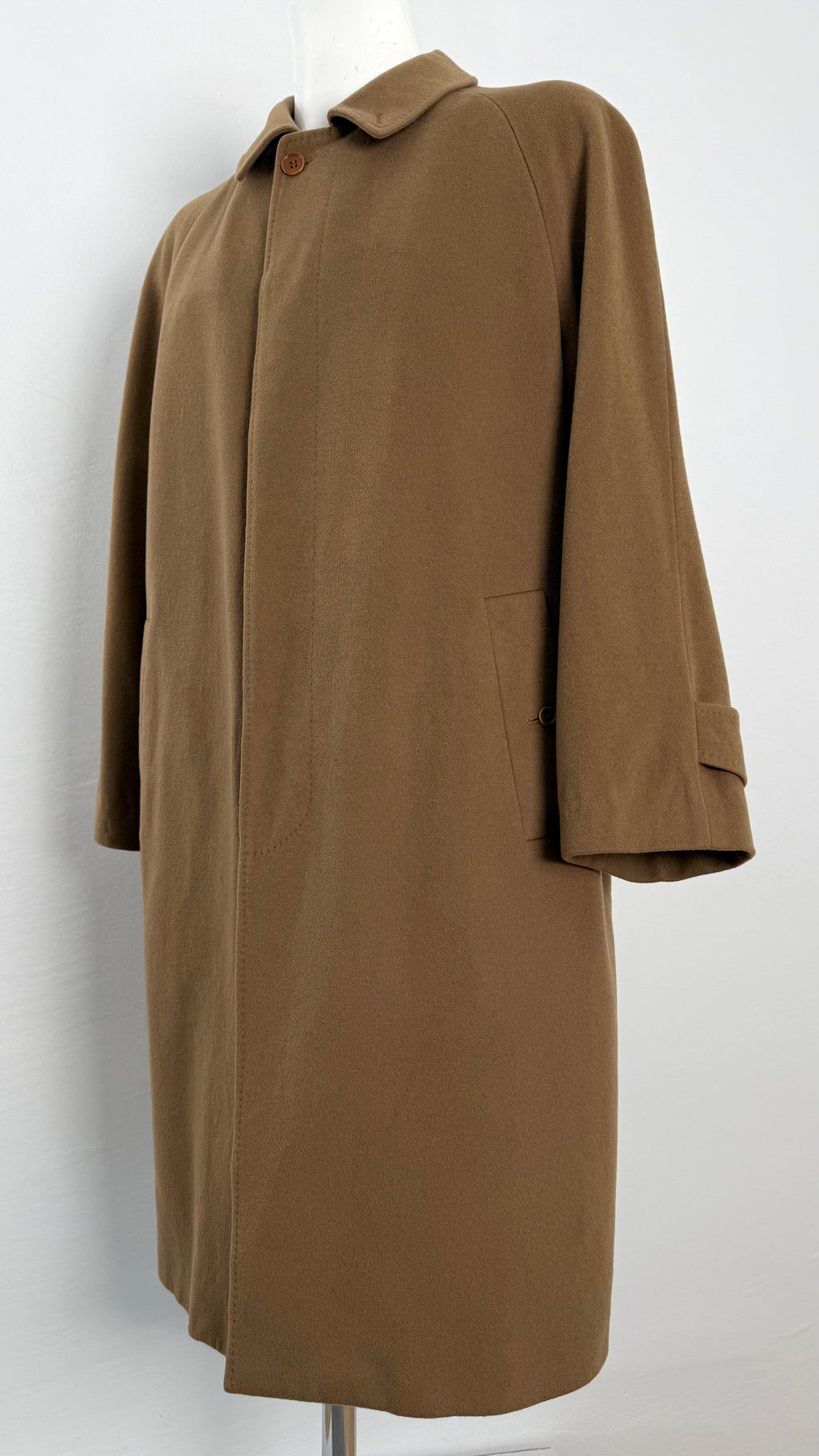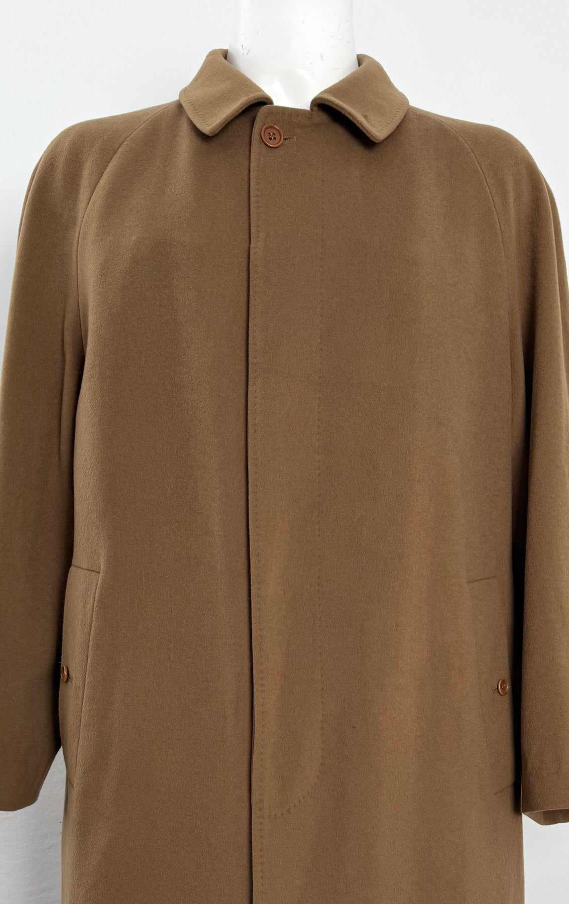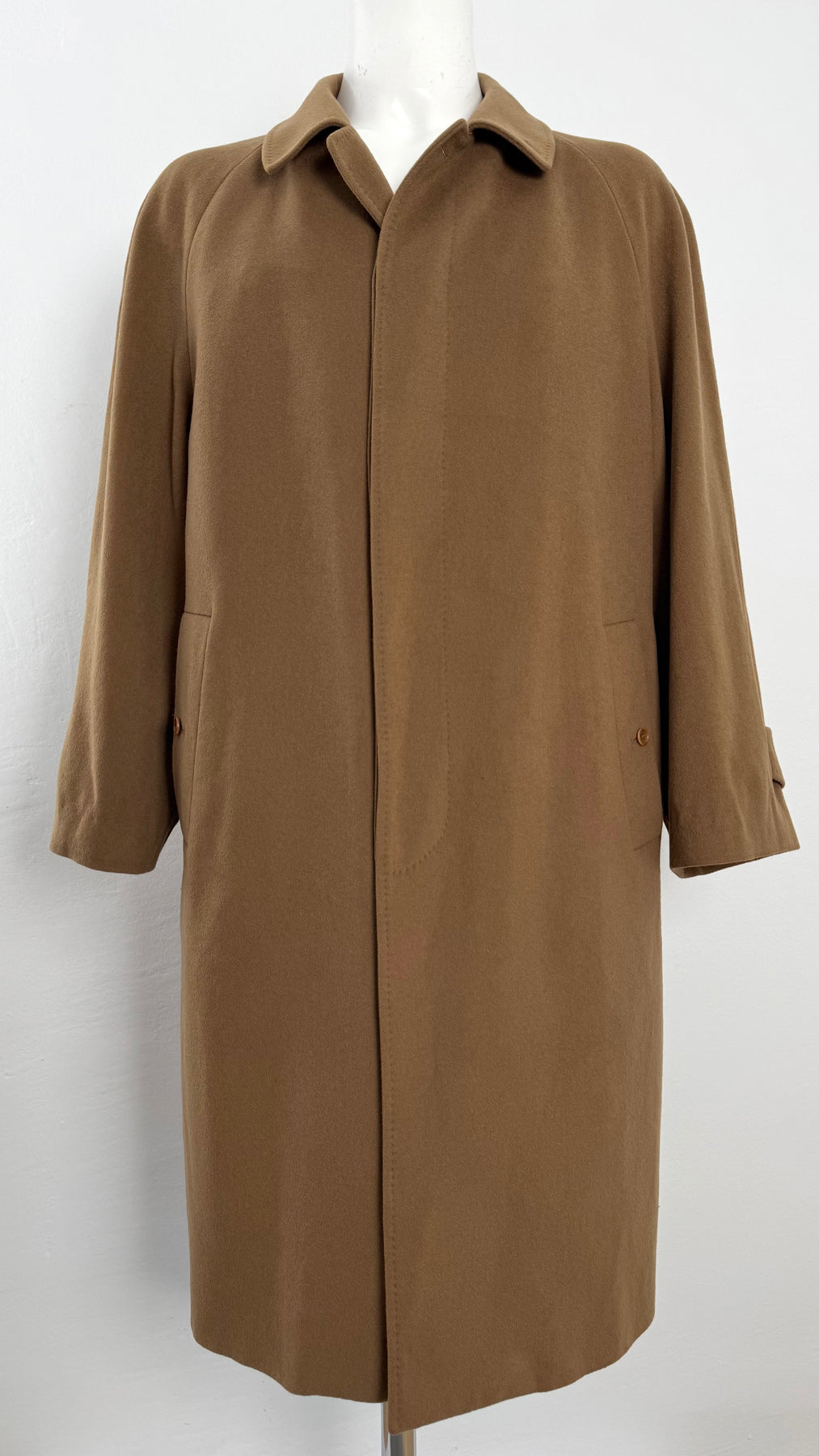Abrigo de lana Burberry color marrón/camel talla 54 (L) en muy buen estado (con pequeños roces en la lana en la zona frontal). Gran calidad de lana, cachemir y poliamida con forro interior de viscosa, cuenta con todos los botones originales.