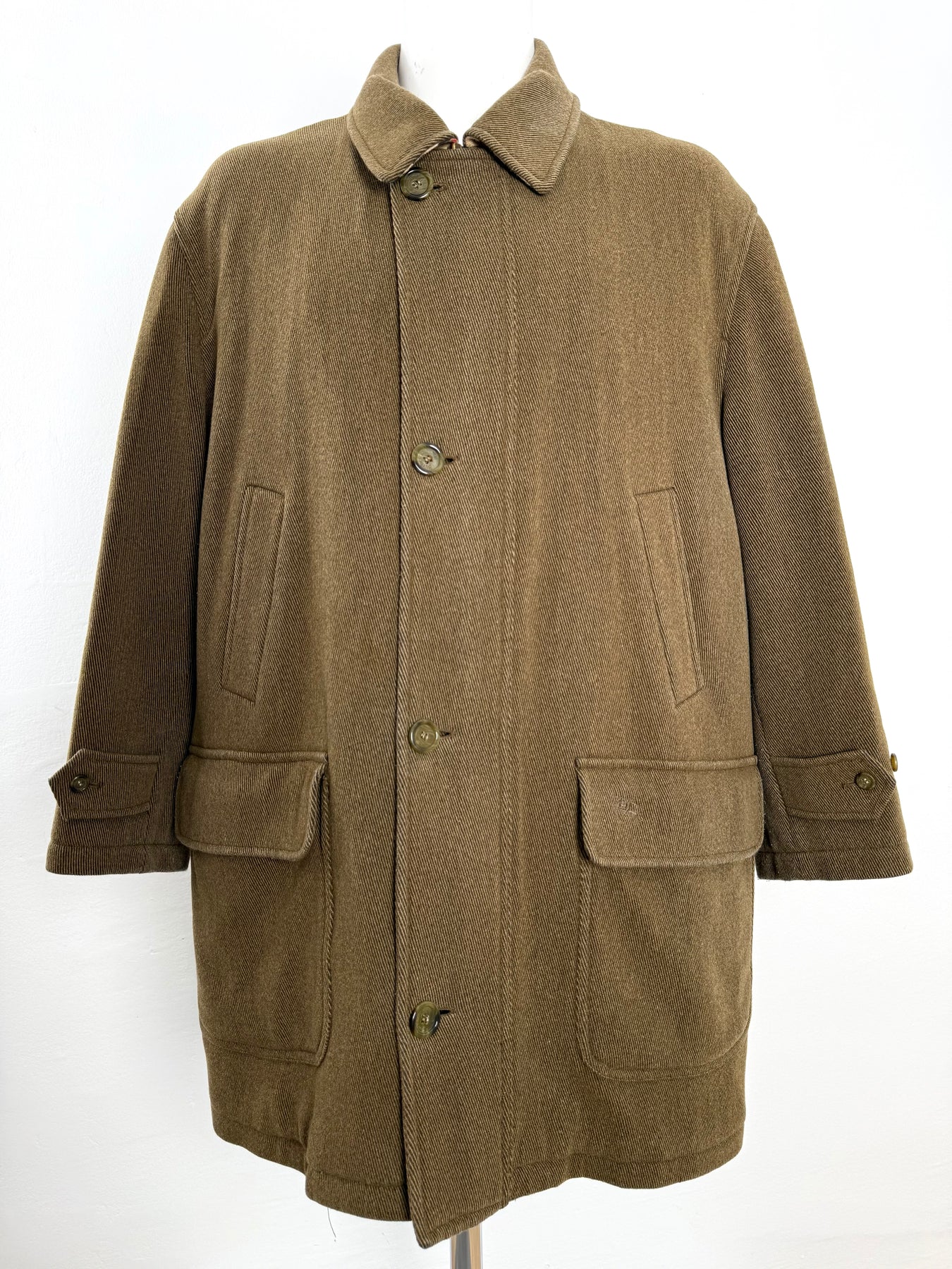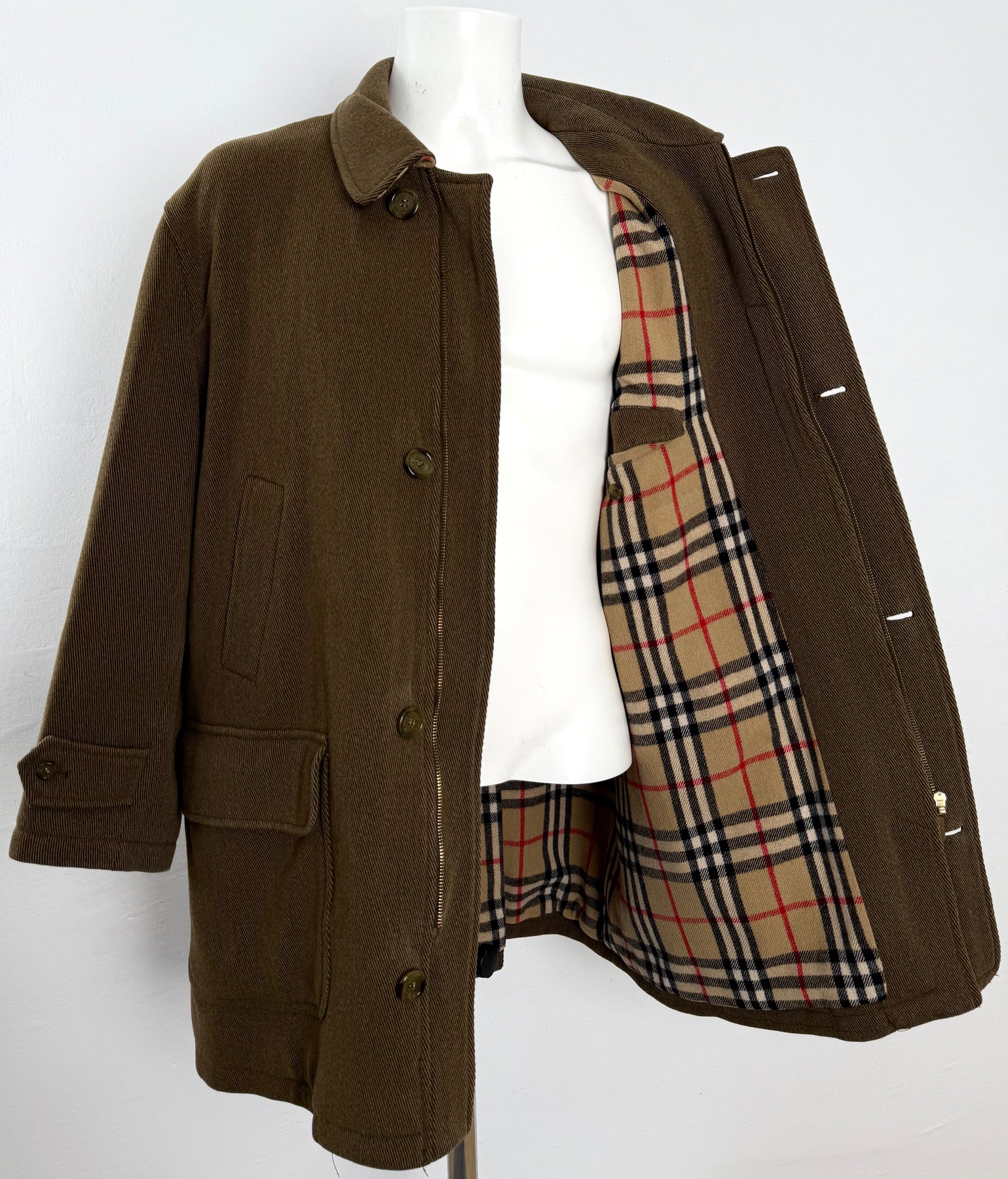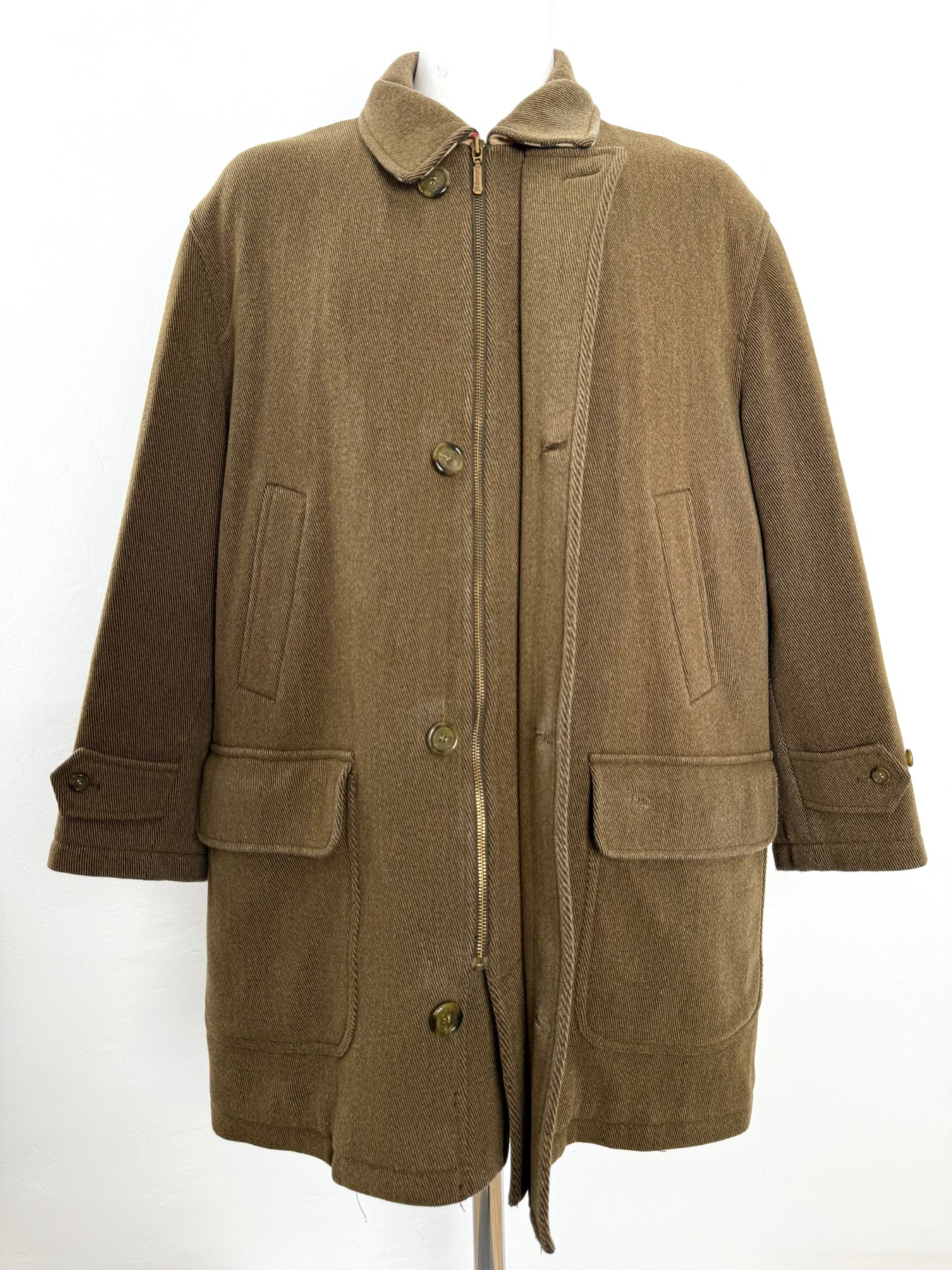 Abrigo de lana Burberry color marrón talla 5 (XL) en perfecto estado (prácticamente nuevo con poco uso). Gran calidad de lana y poliamida con forro interior de lana, acrílico y poliéster, cuenta con todos los botones y cremalleras originales.