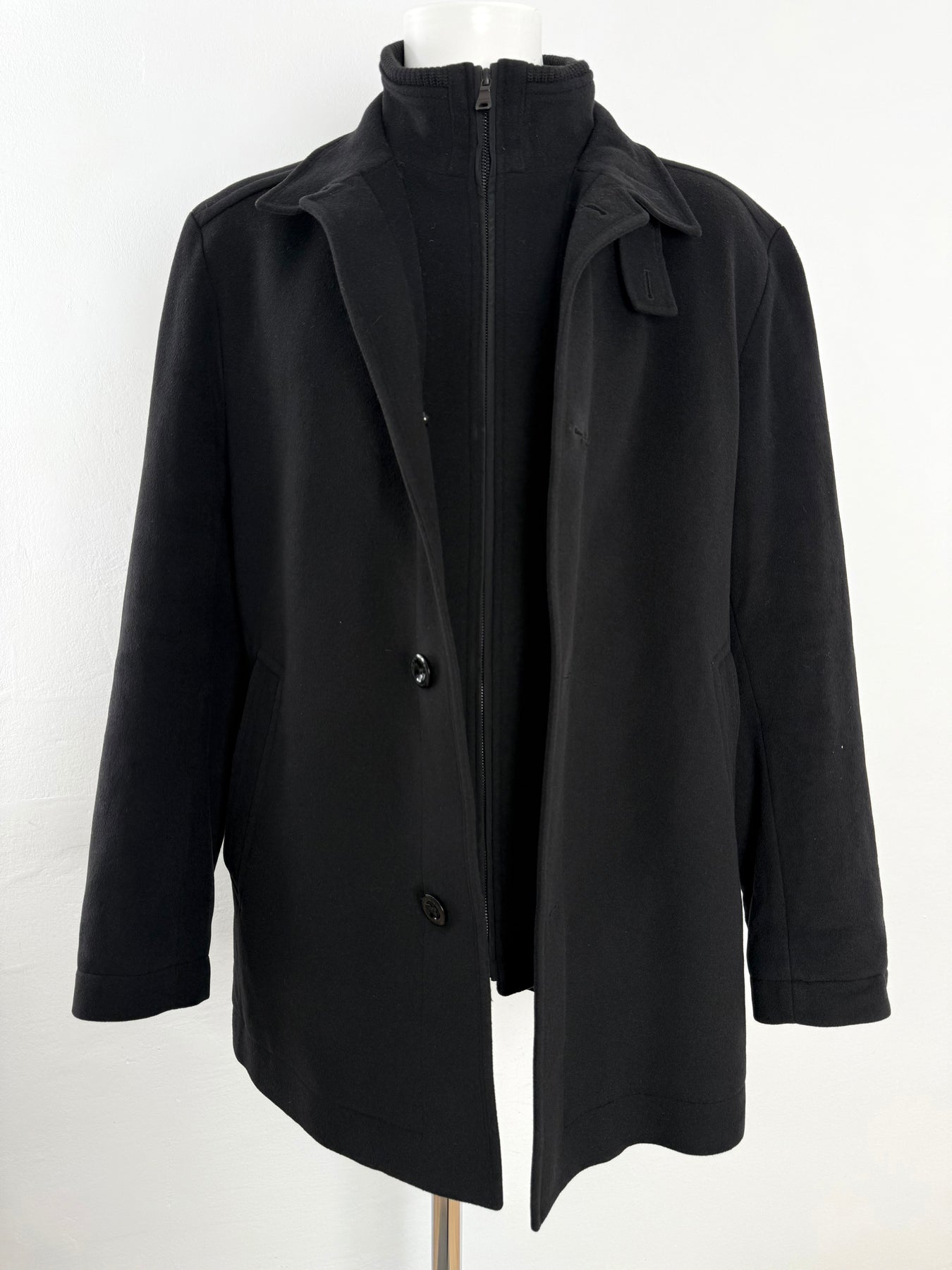 Abrigo de lana Hugo Boss color gris oscuro talla 54 (XL) en perfecto estado (prácticamente nuevo con poco uso). Gran calidad de lana y cachemir con forro interior de acetato y viscosa, cuenta con todos los botones y cremalleras originales.