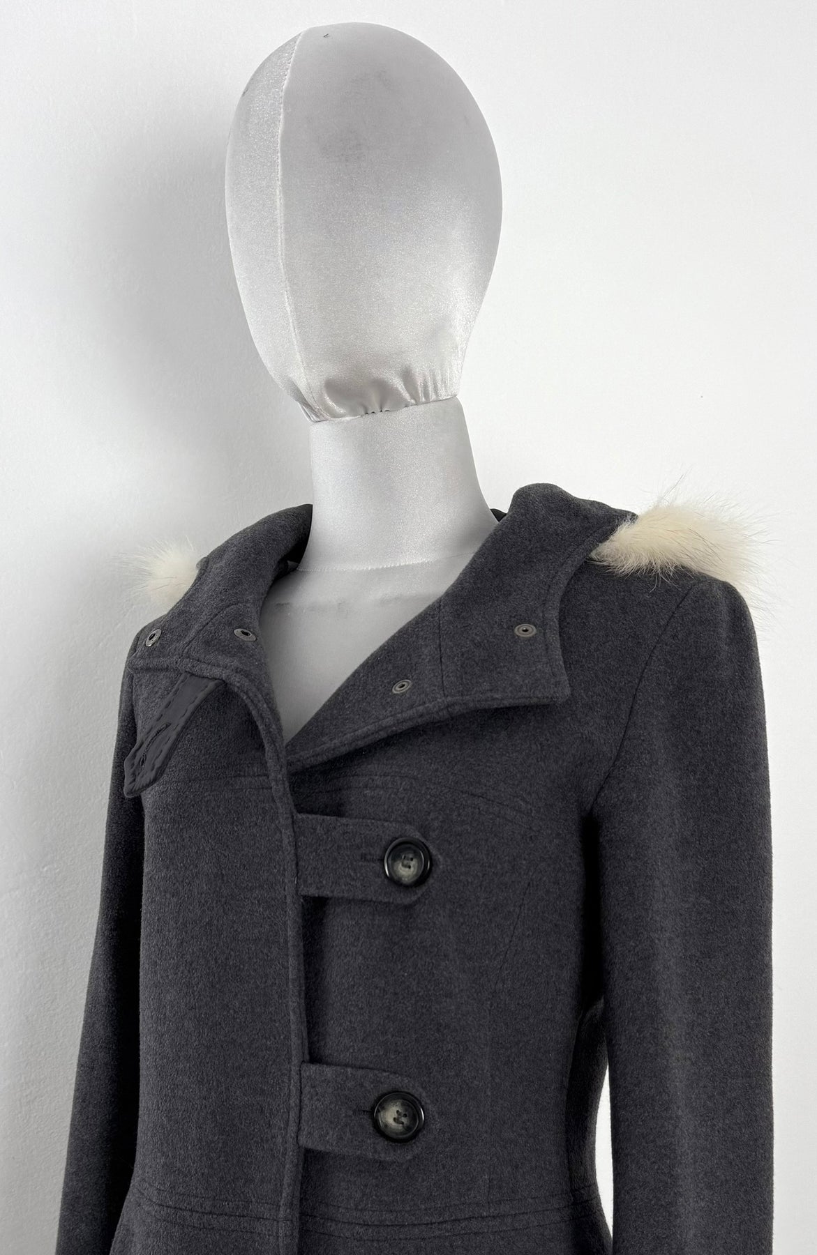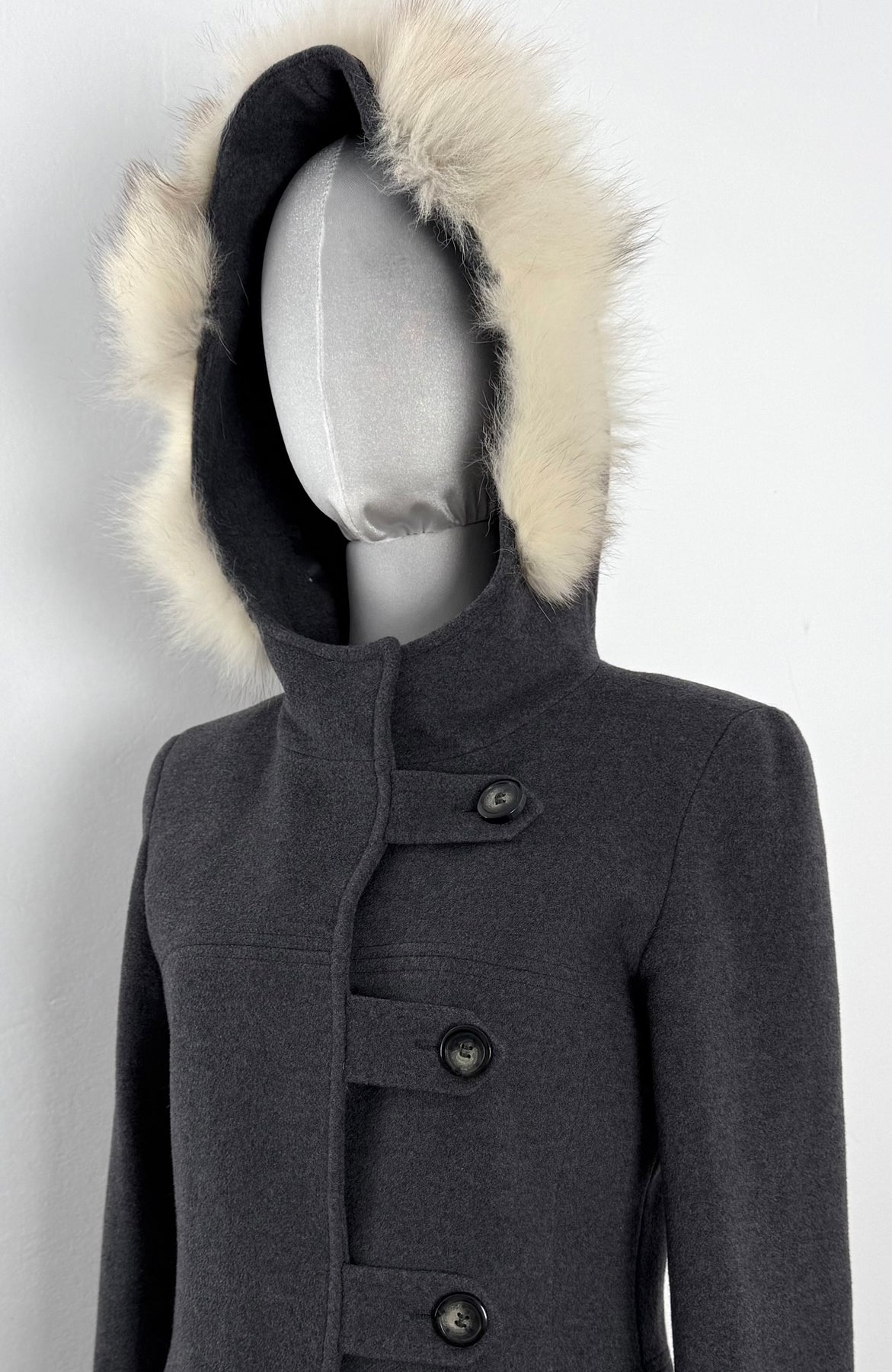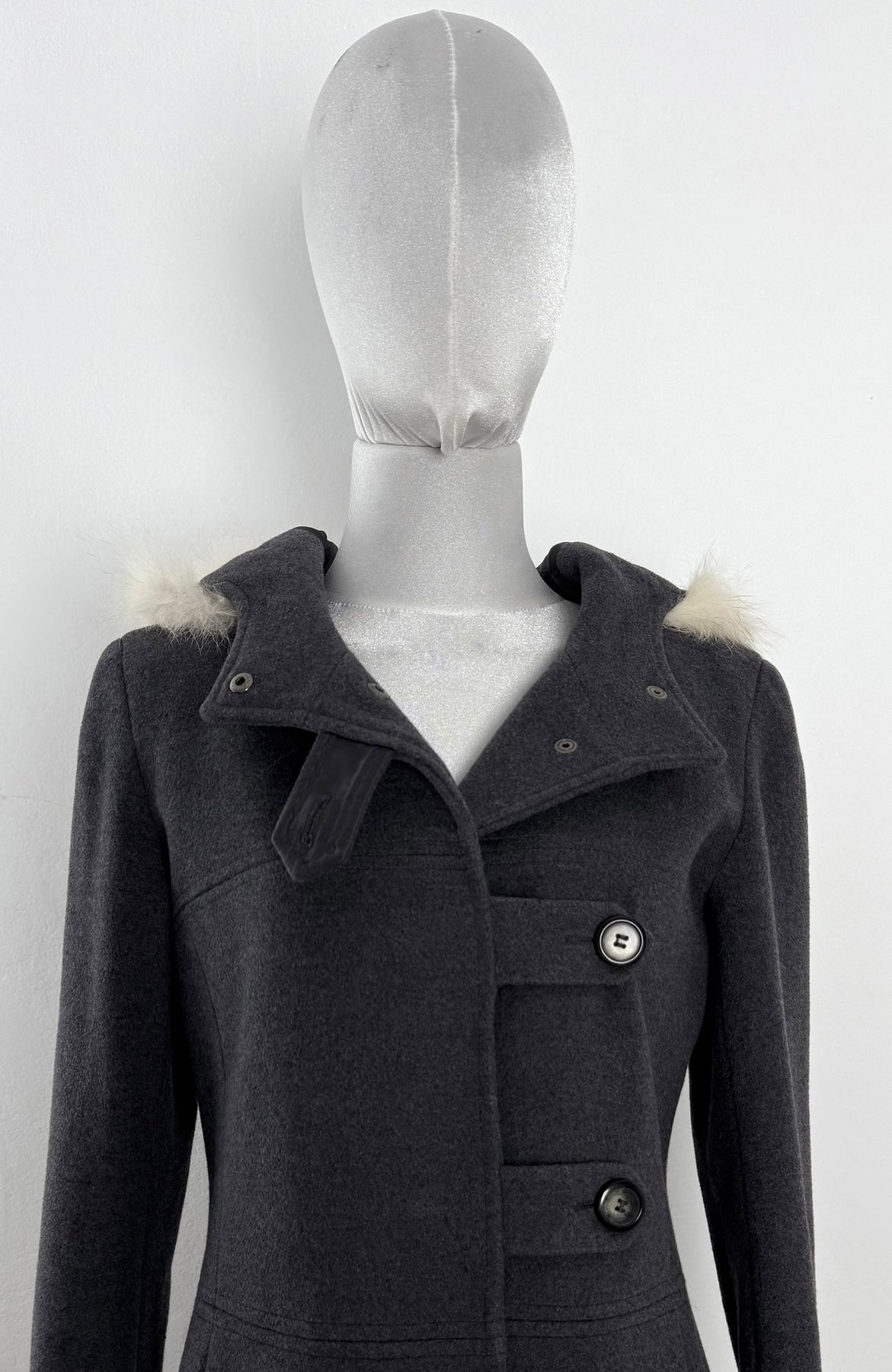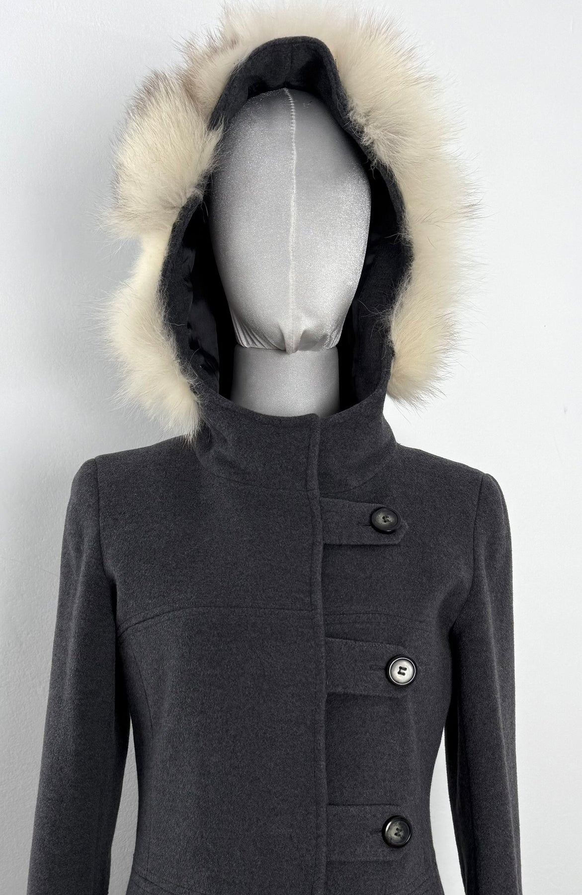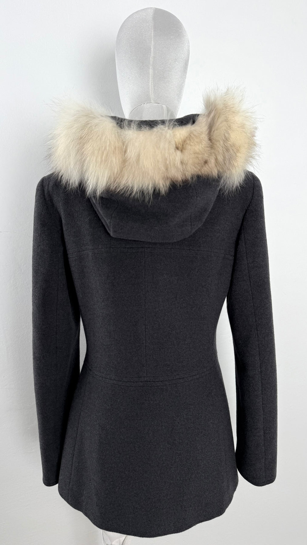 Abrigo Max & Co color gris talla (S) en muy buen estado (con poco uso, sin etiqueta de composición, zonas en el pelo de la capucha más corto). Gran calidad de lana con forro interior de poliamida y pelo en la capucha, cuenta con todos los botones originales.