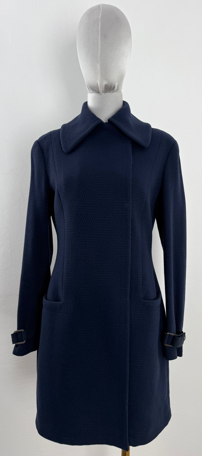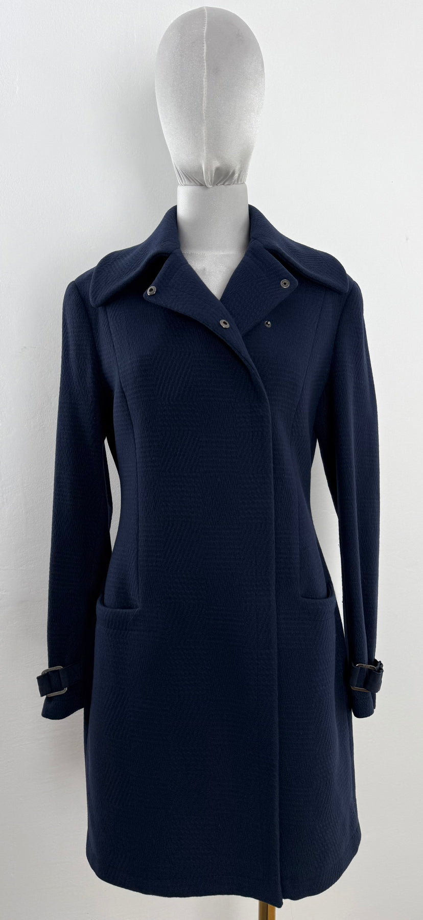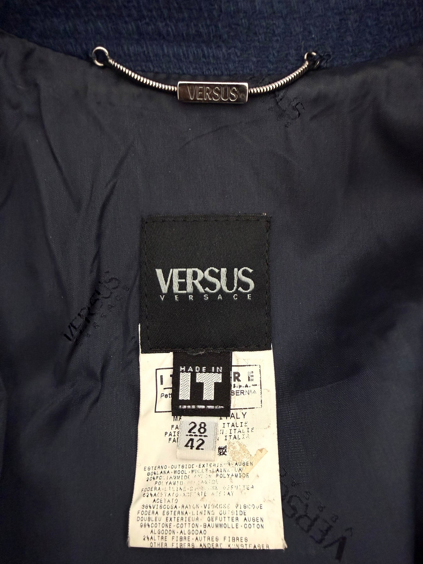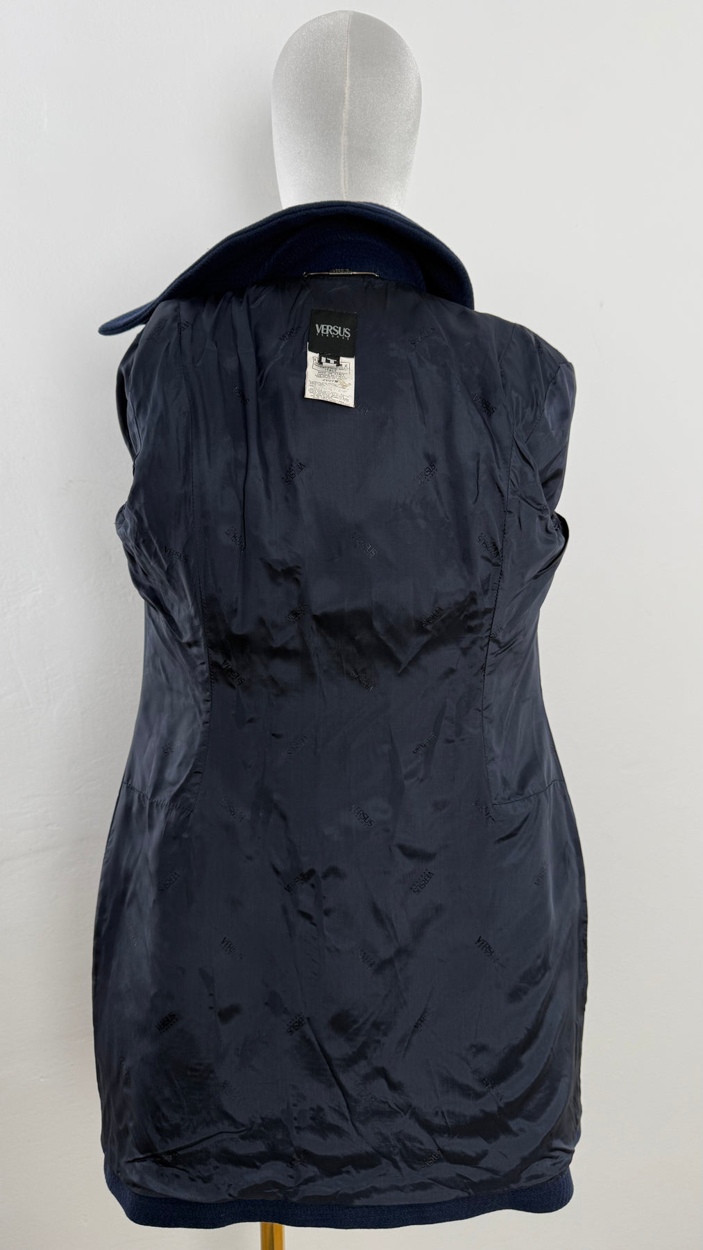 Abrigo de lana Versus color azul talla 42 (S) en perfecto estado (prácticamente nuevo con poco uso). Gran calidad de lana y poliamida con forro interior de acetato y viscosa, cuenta con todos los botones originales.