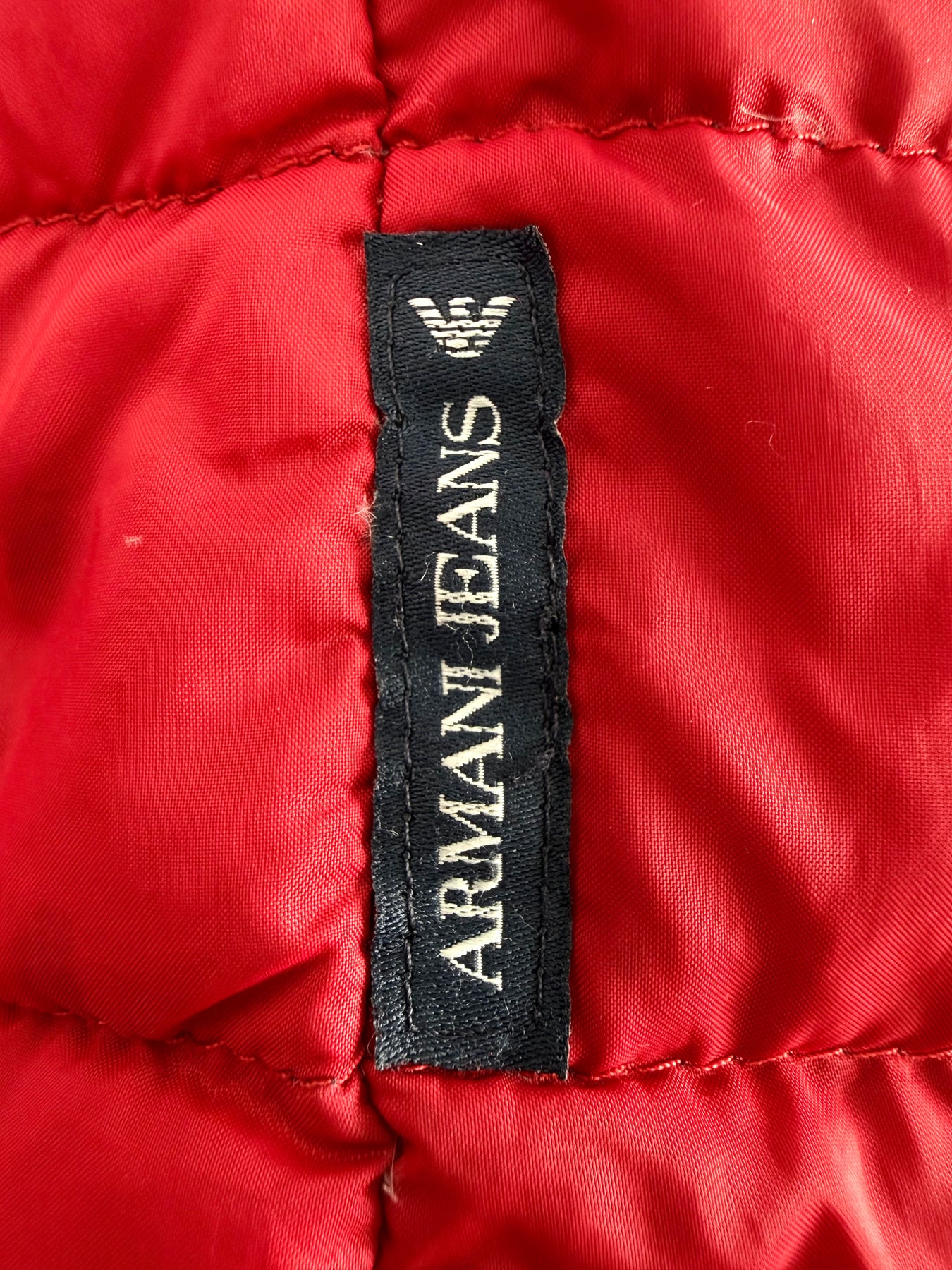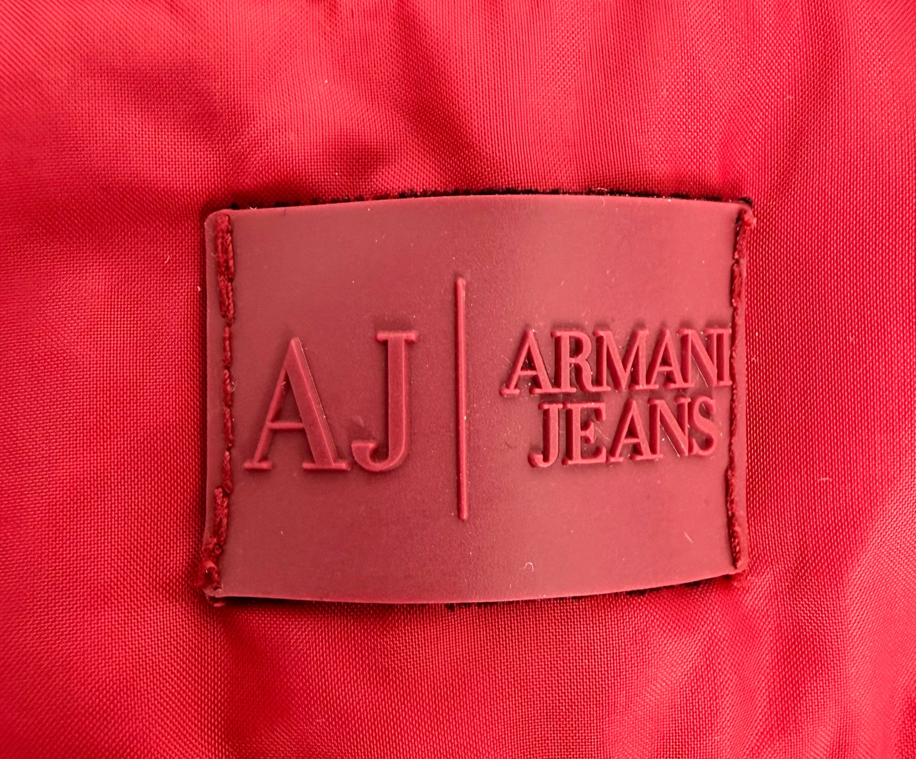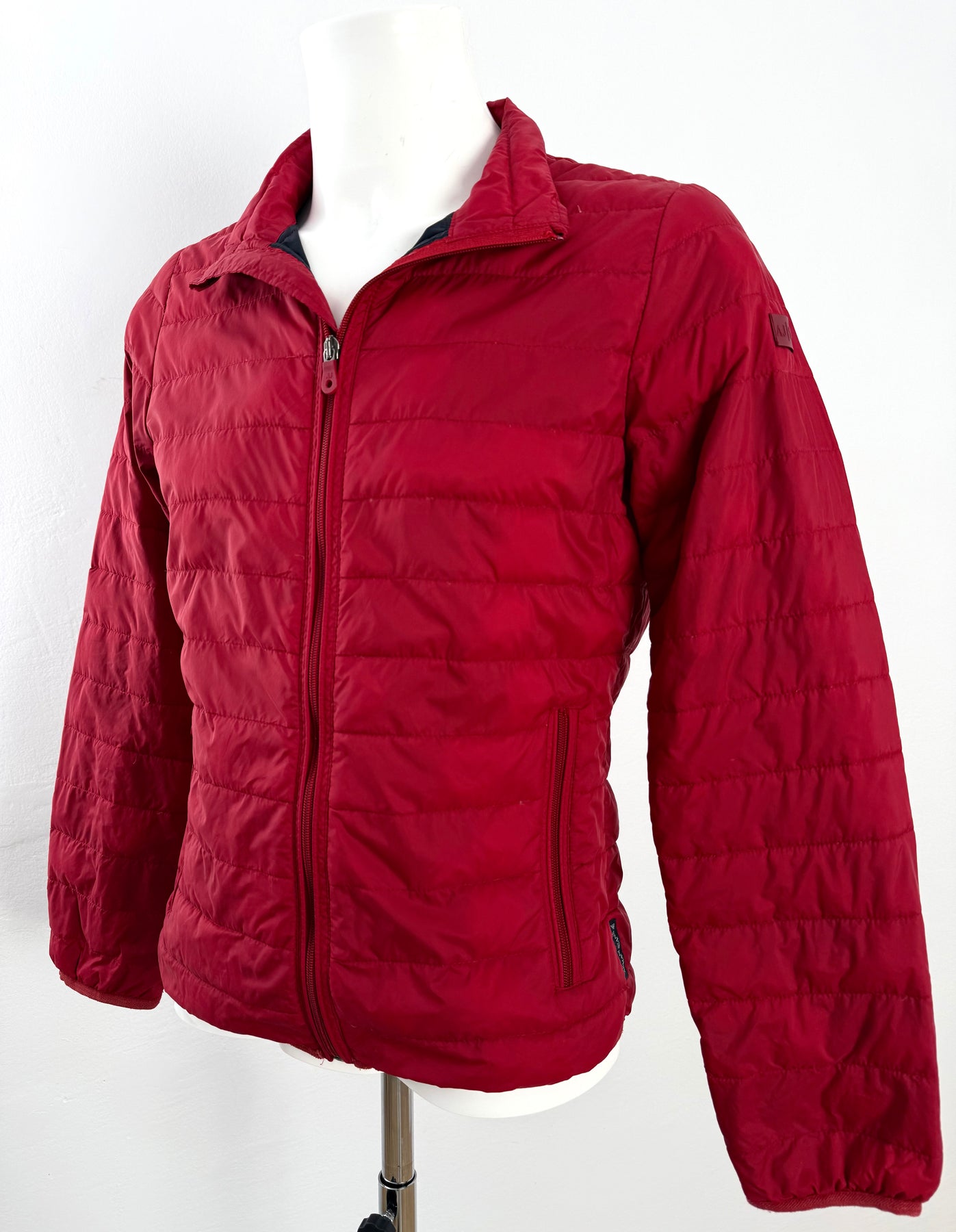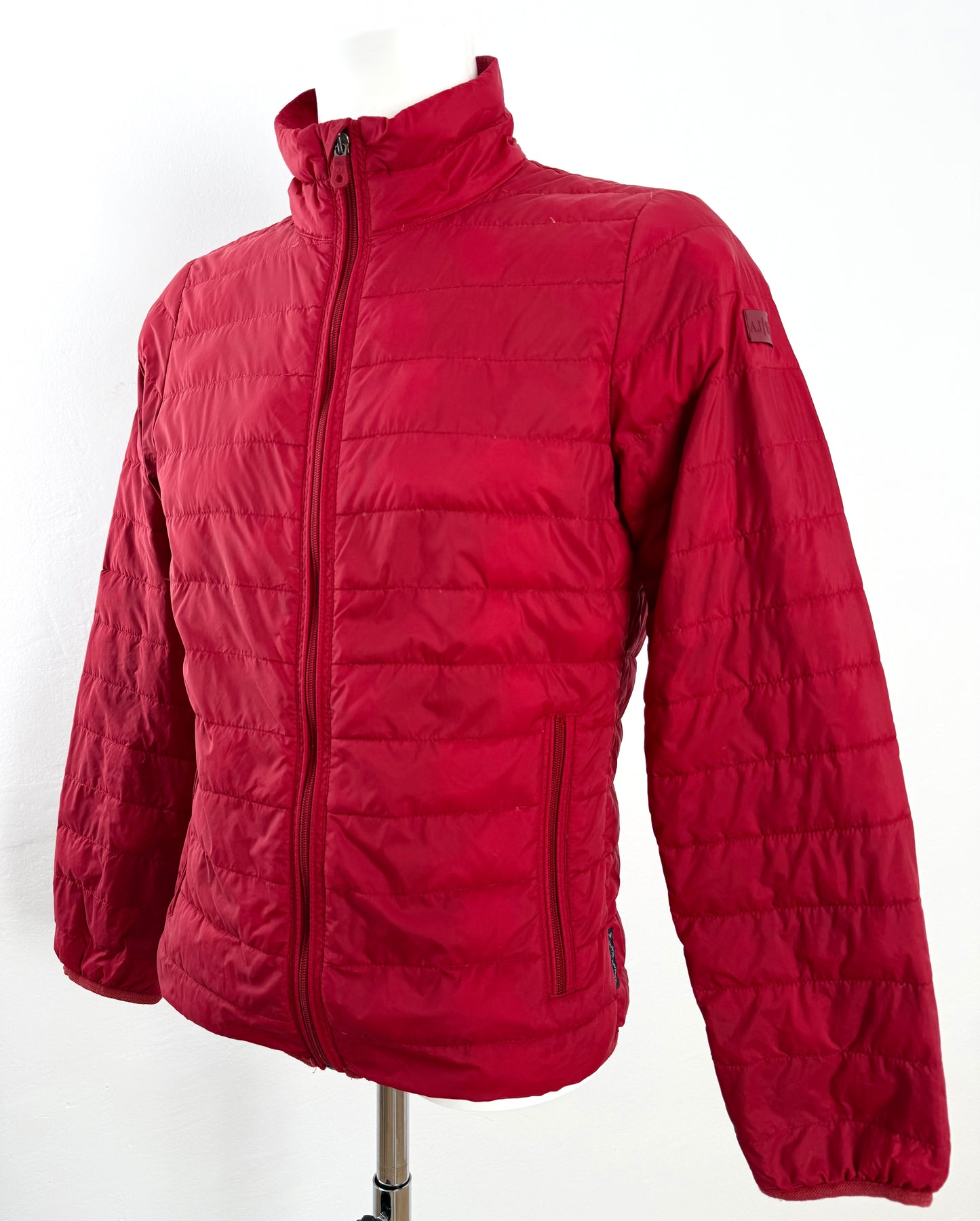 Abrigo de plumas Armani Jeans color rojo talla 46 (XS) en muy buen estado (con poco uso, pequeñas manchas azules poco visibles). Gran calidad de poliamida con relleno de plumas, cuenta con todas las cremalleras originales.