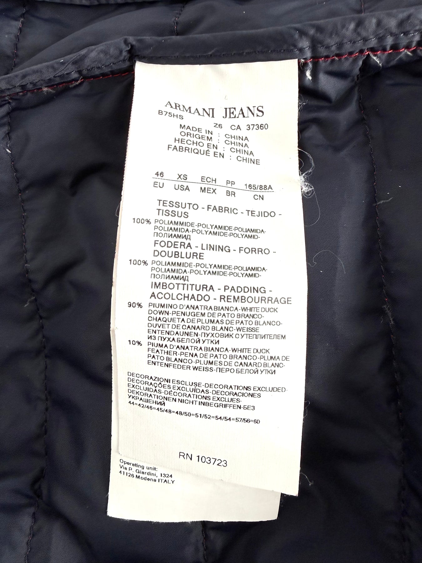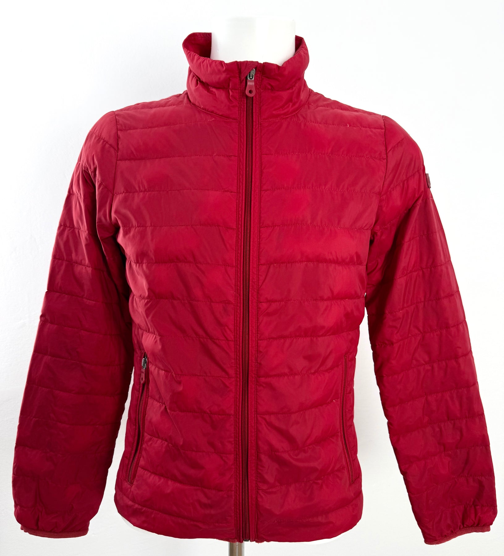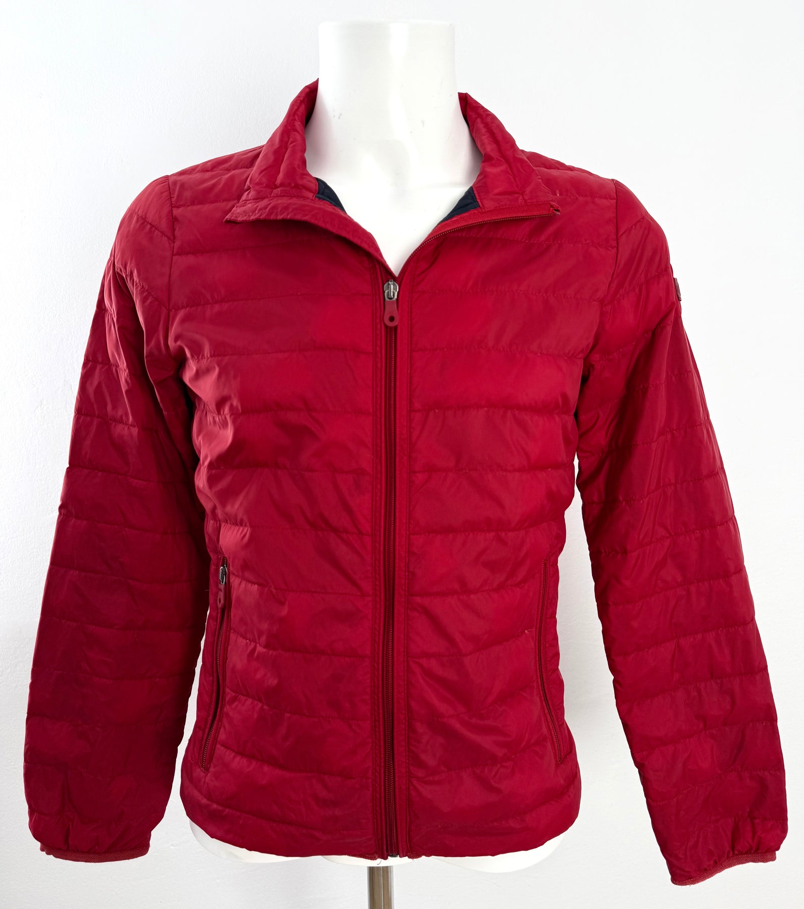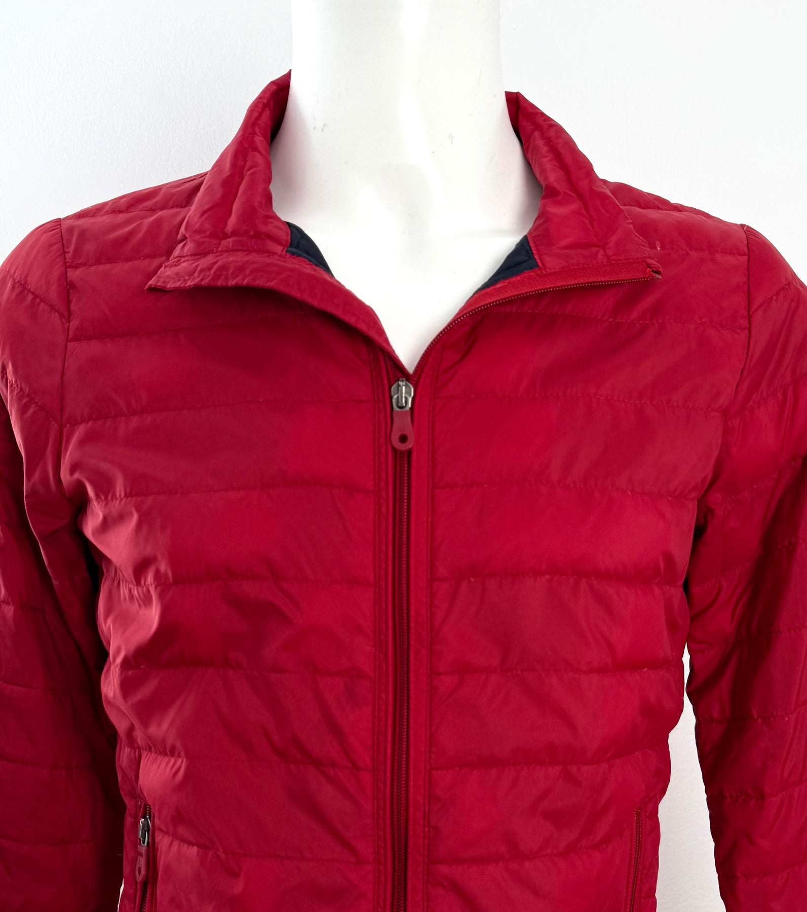 Abrigo de plumas Armani Jeans color rojo talla 46 (XS) en muy buen estado (con poco uso, pequeñas manchas azules poco visibles). Gran calidad de poliamida con relleno de plumas, cuenta con todas las cremalleras originales.