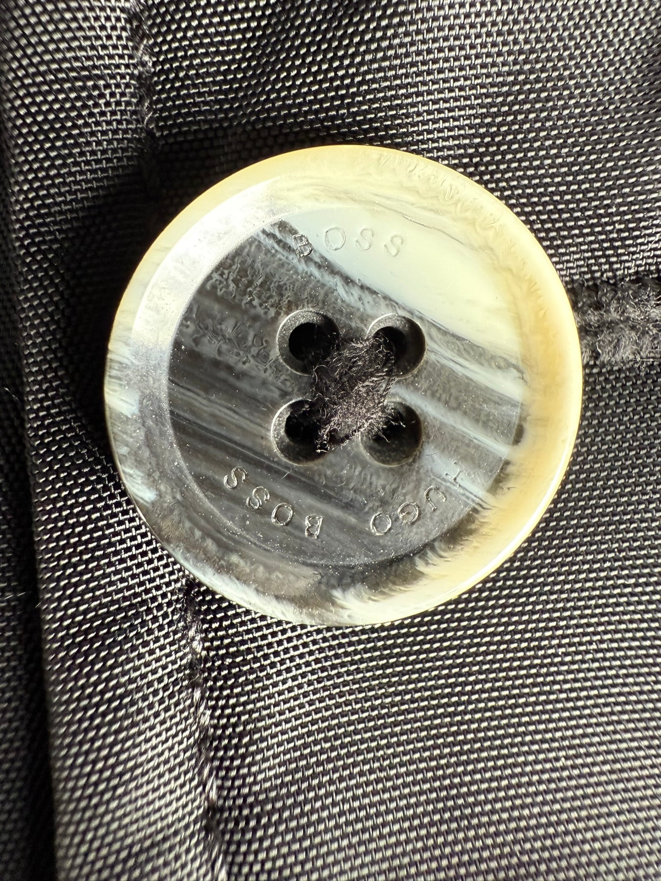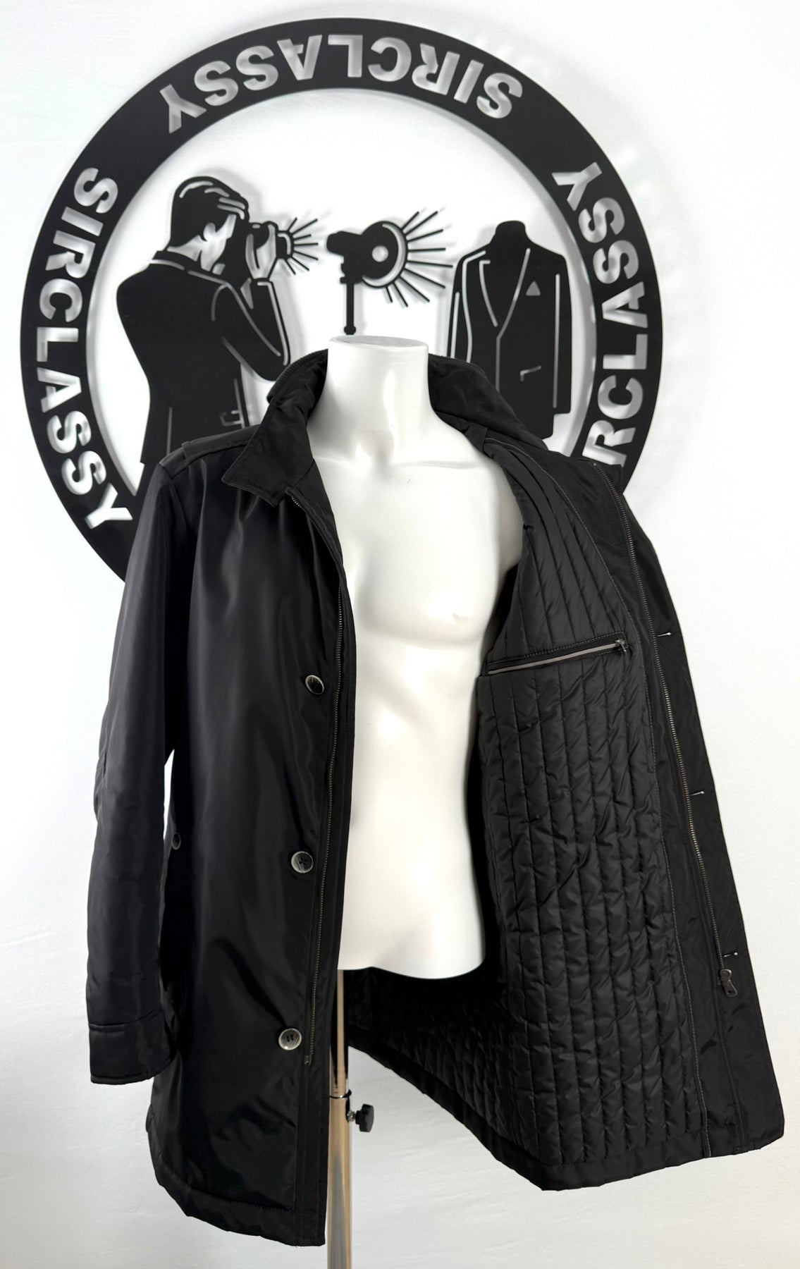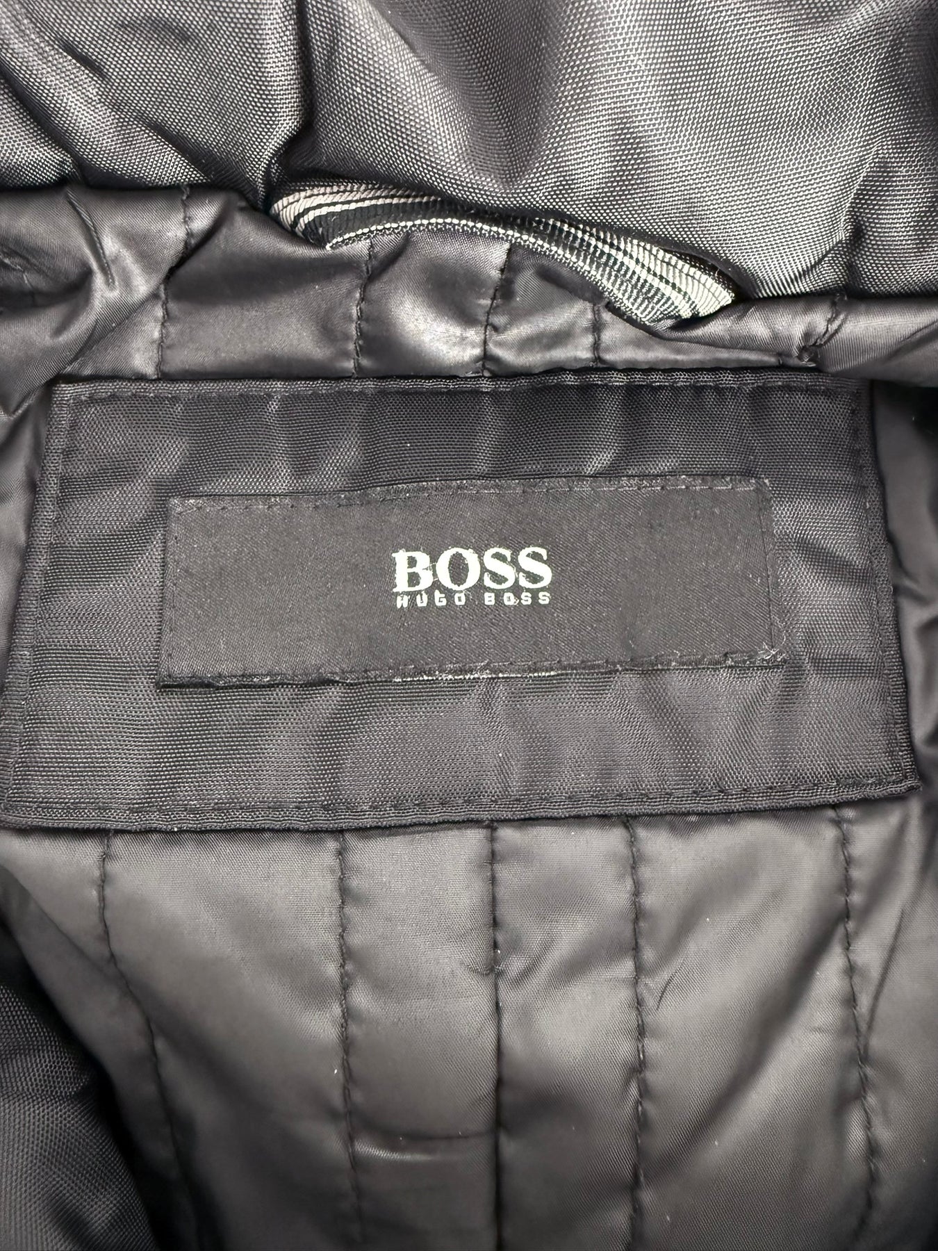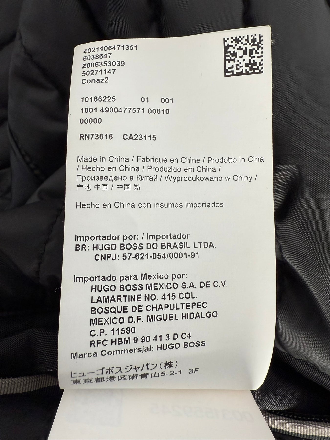 Abrigo impermeable Hugo Boss color negro talla 52 (XL) en perfecto estado (prácticamente nuevo con poco uso). Gran calidad de poliamida con forro interior de acrílico, lana, poliamida y elastano, cuenta con todos los botones y cremalleras originales.