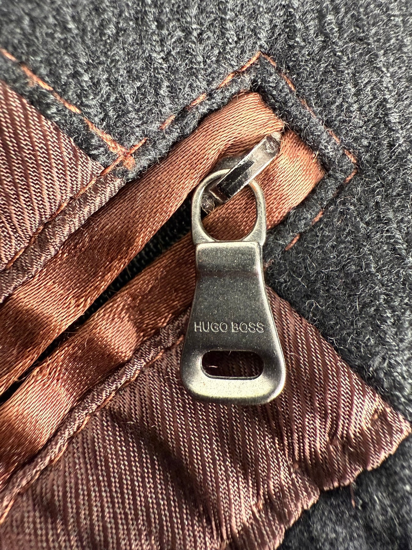 Abrigo de lana Hugo Boss color negro talla 54 (XL) en perfecto estado (prácticamente nuevo con poco uso). Gran calidad de lana y cachemir con forro interior de lana, poliéster y cachemir, cuenta con todos los botones y cremalleras originales. La manga es estilo ranglán.