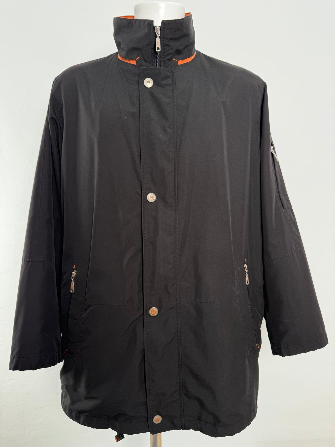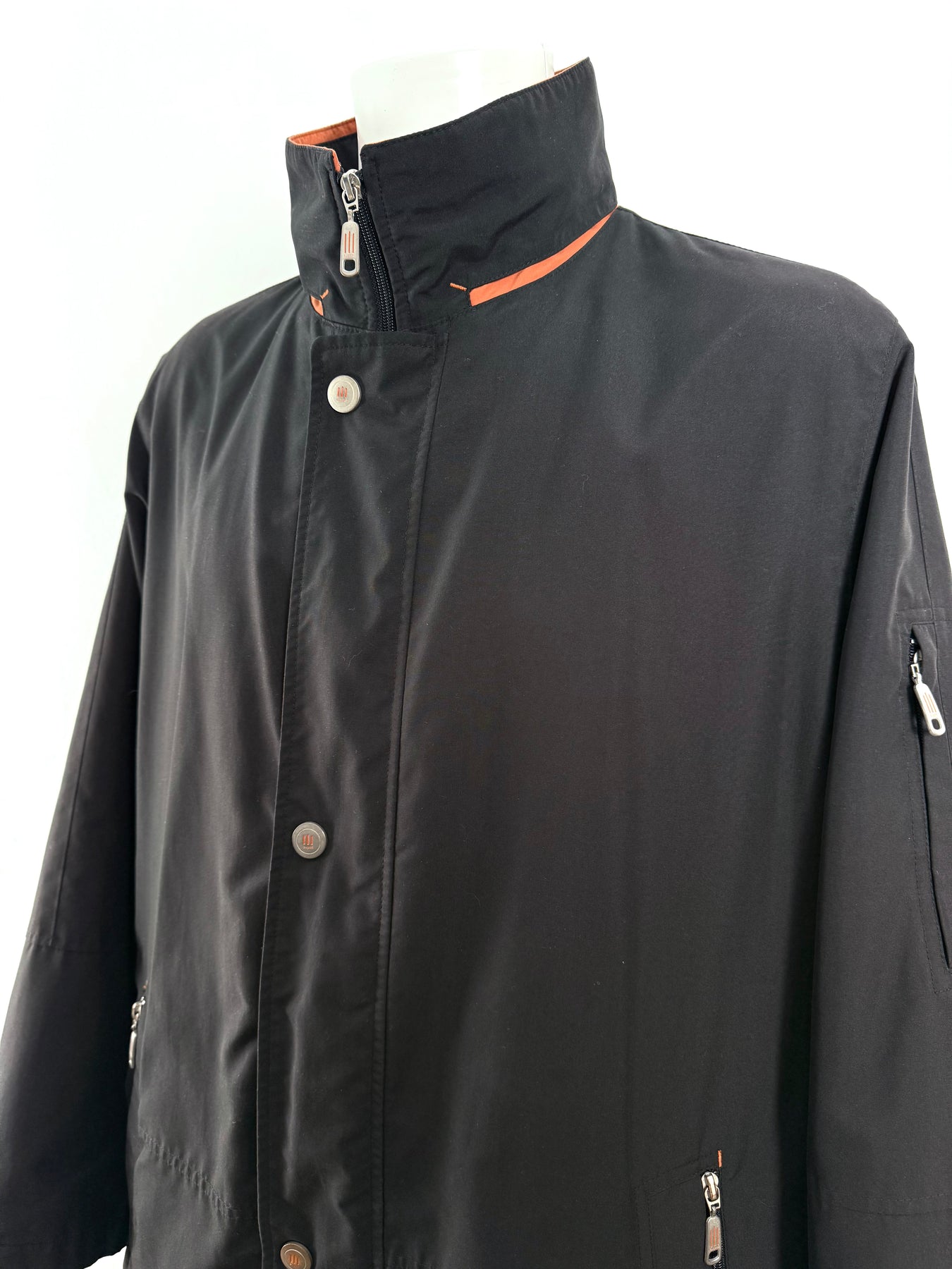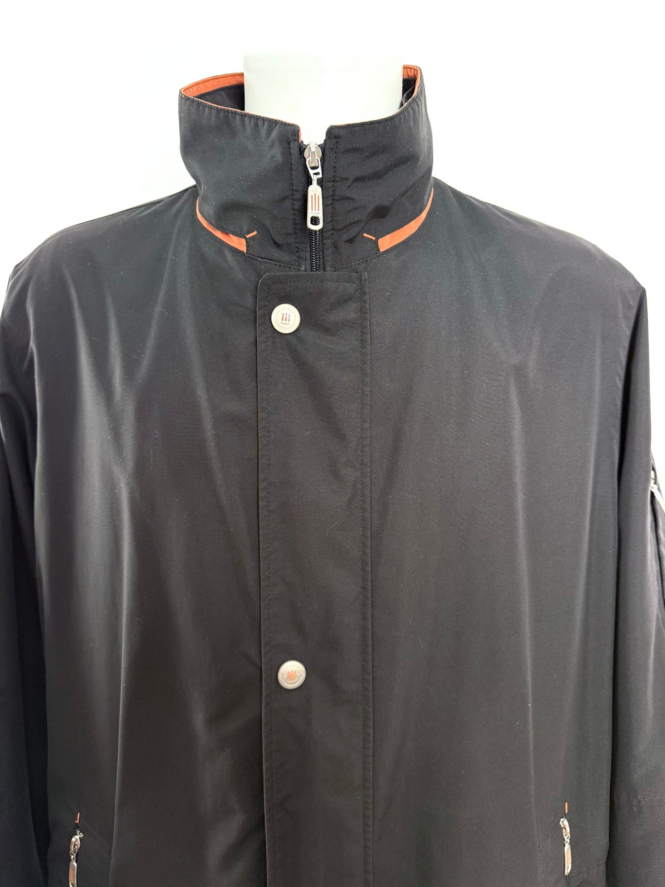 Abrigo impermeable con tecnología Goretex Bugatti color negro talla 52 (L) en perfecto estado (practicamente nuevo con poco uso). Gran calidad de poliéster, cuenta con todos los botones y cremalleras originales.