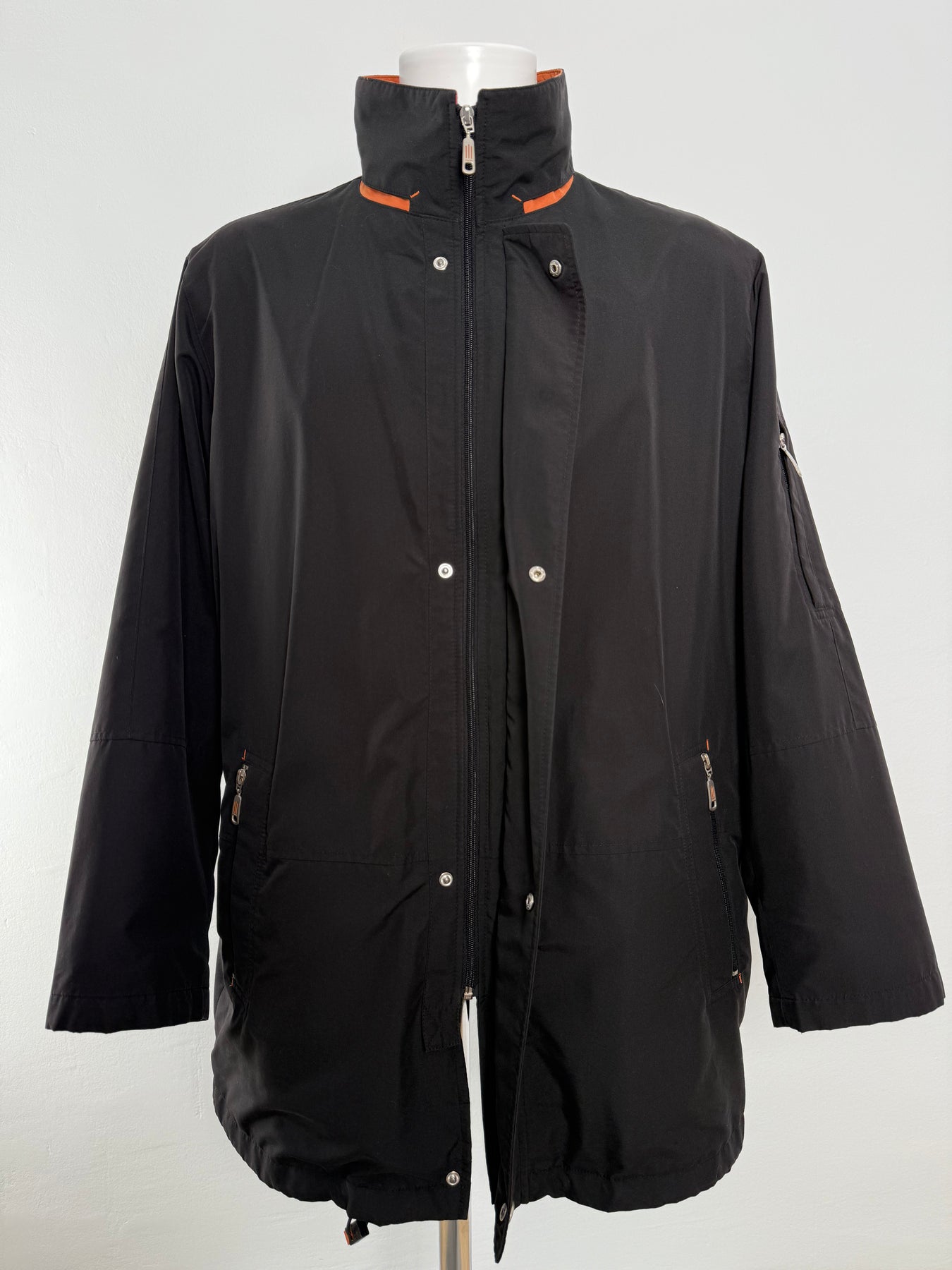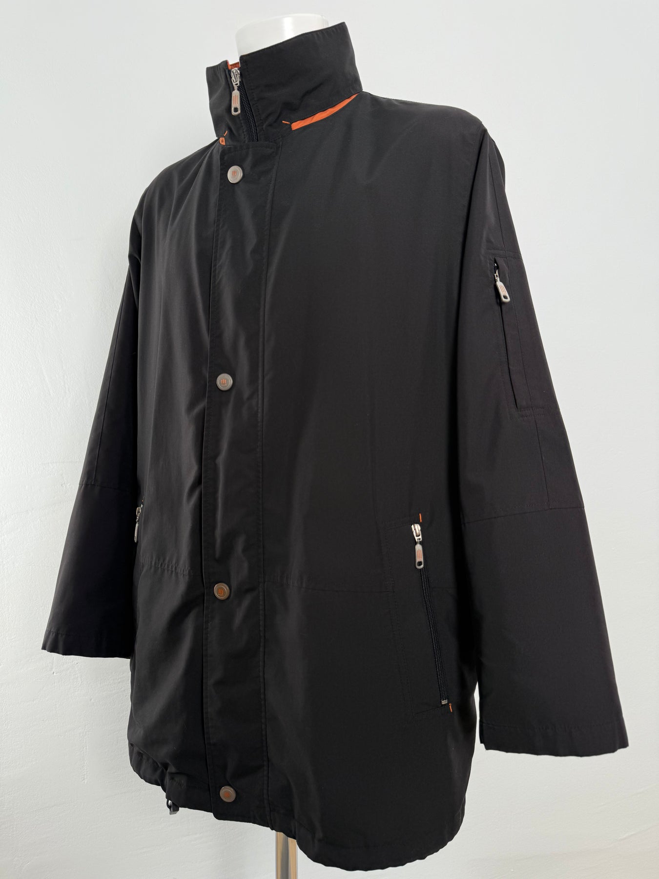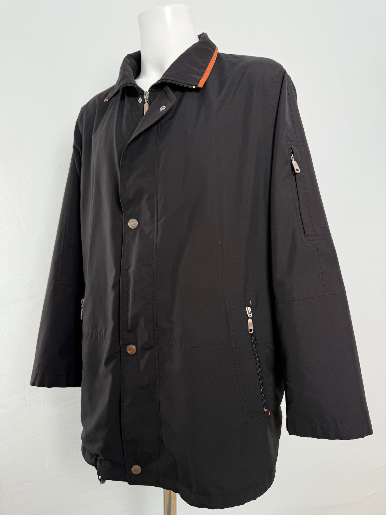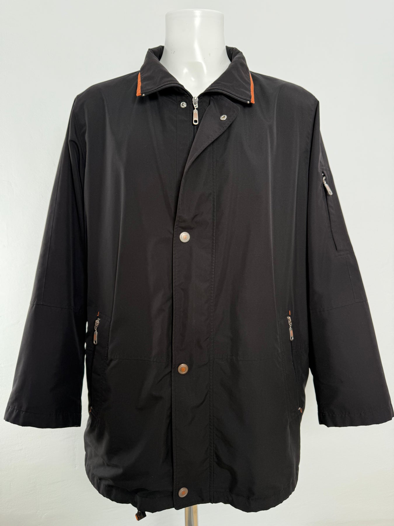 Abrigo impermeable con tecnología Goretex Bugatti color negro talla 52 (L) en perfecto estado (practicamente nuevo con poco uso). Gran calidad de poliéster, cuenta con todos los botones y cremalleras originales.