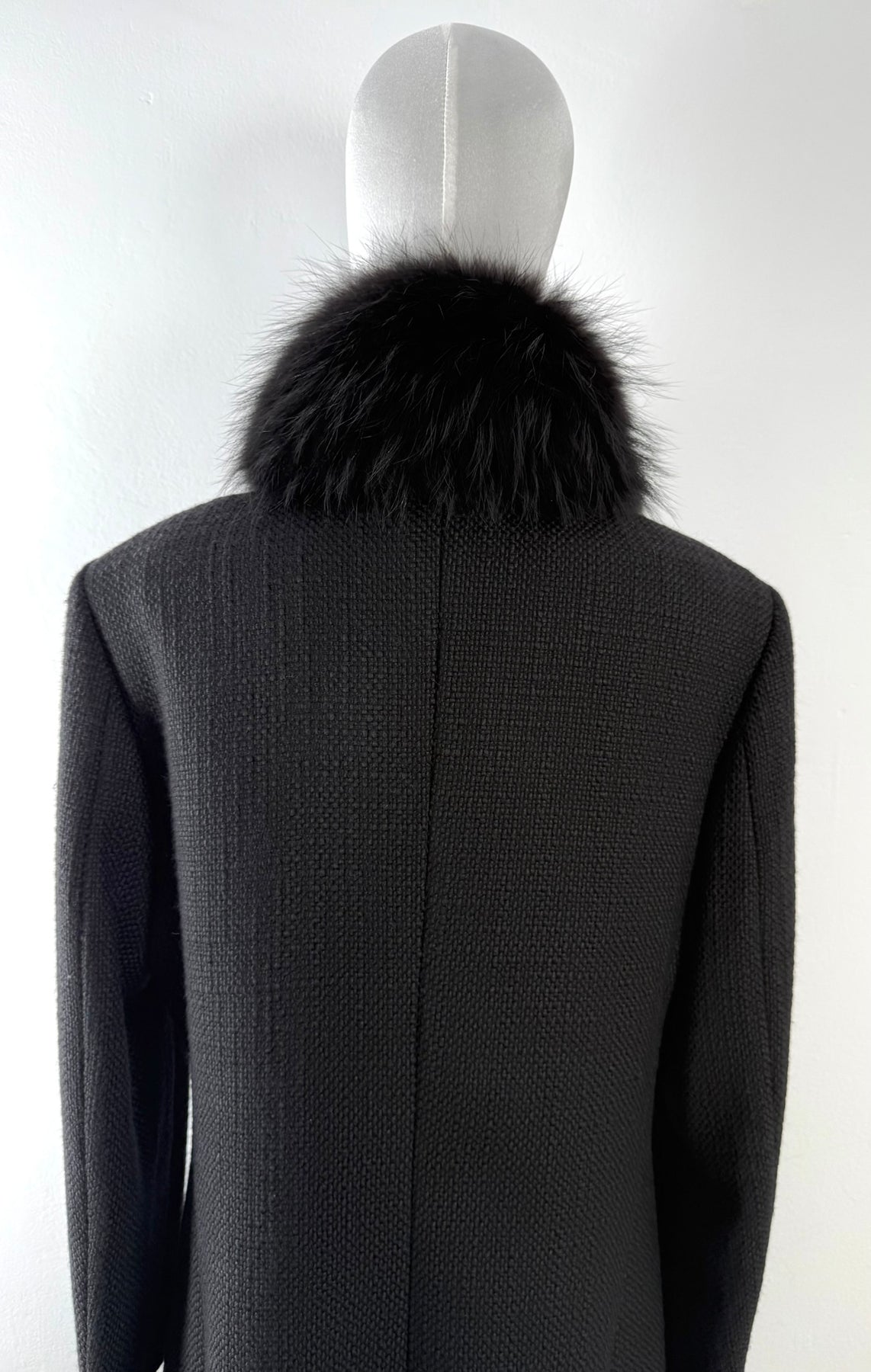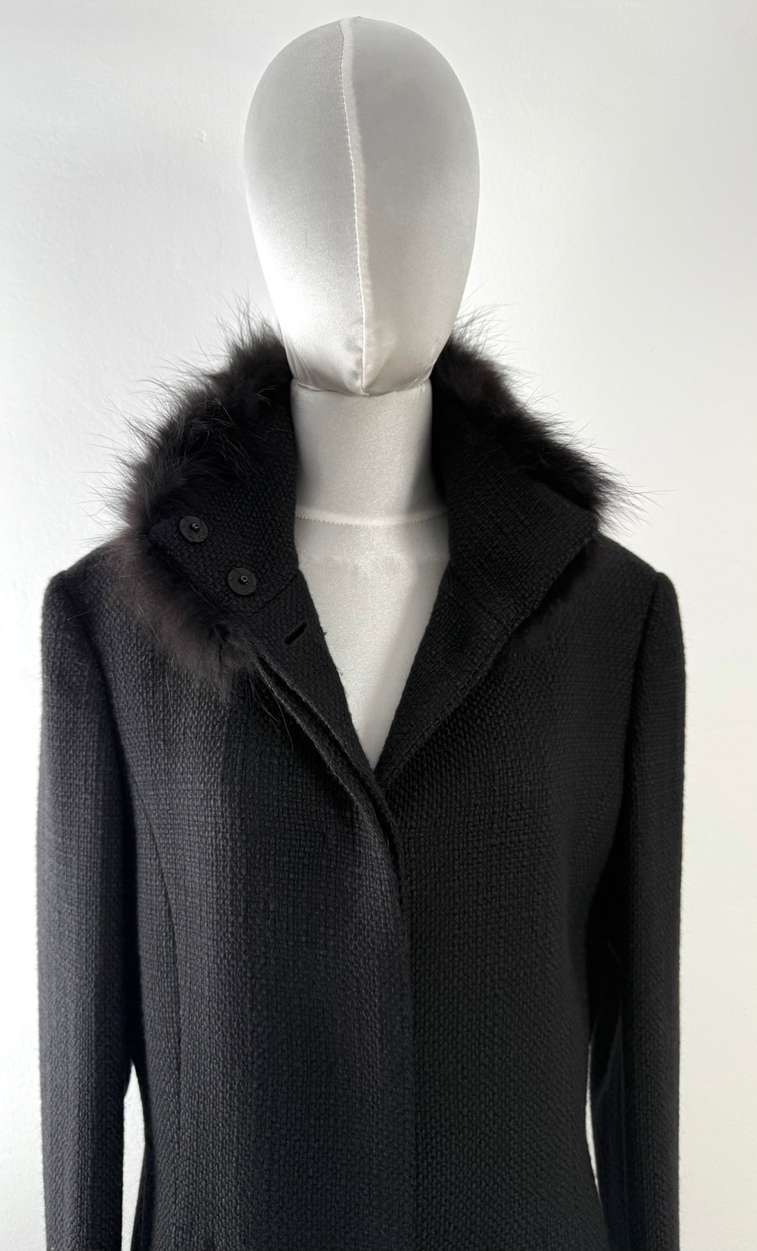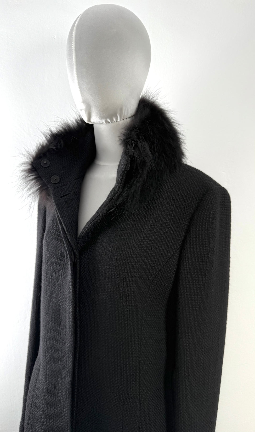 Abrigo largo de lana y pelo en el cuello Versus Versace color negro talla 38 (M) en perfecto estado (prácticamente nuevo con poco uso). Gran calidad de lana, viscosa y poliamida con forro interior de acetato y viscosa, con todos los botones originales.