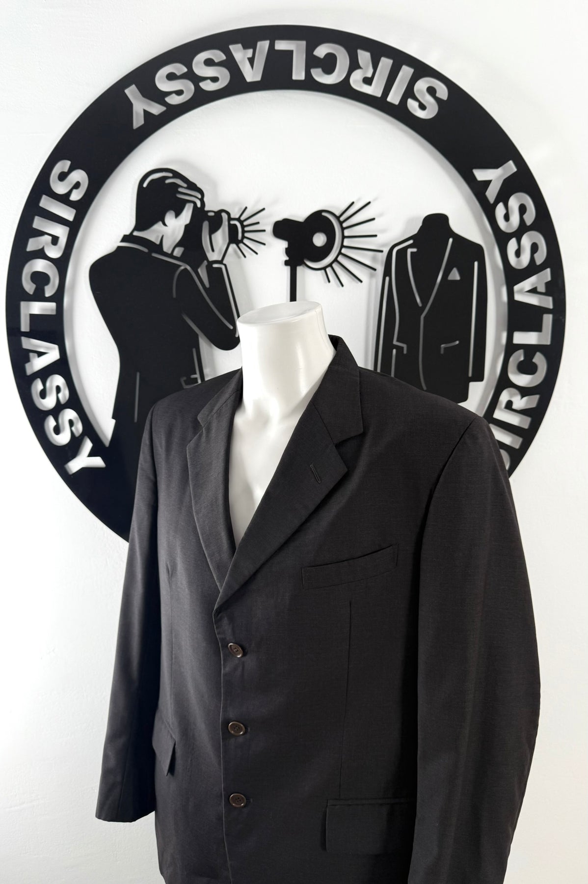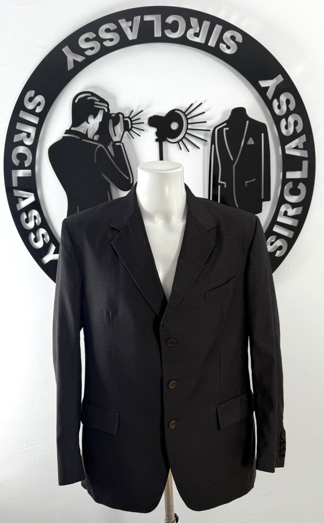Americana con tejido Loro Piana color gris oscuro talla (L) en muy buen estado (con poco uso). Gran calidad de lana super 100, con todos los botones originales.