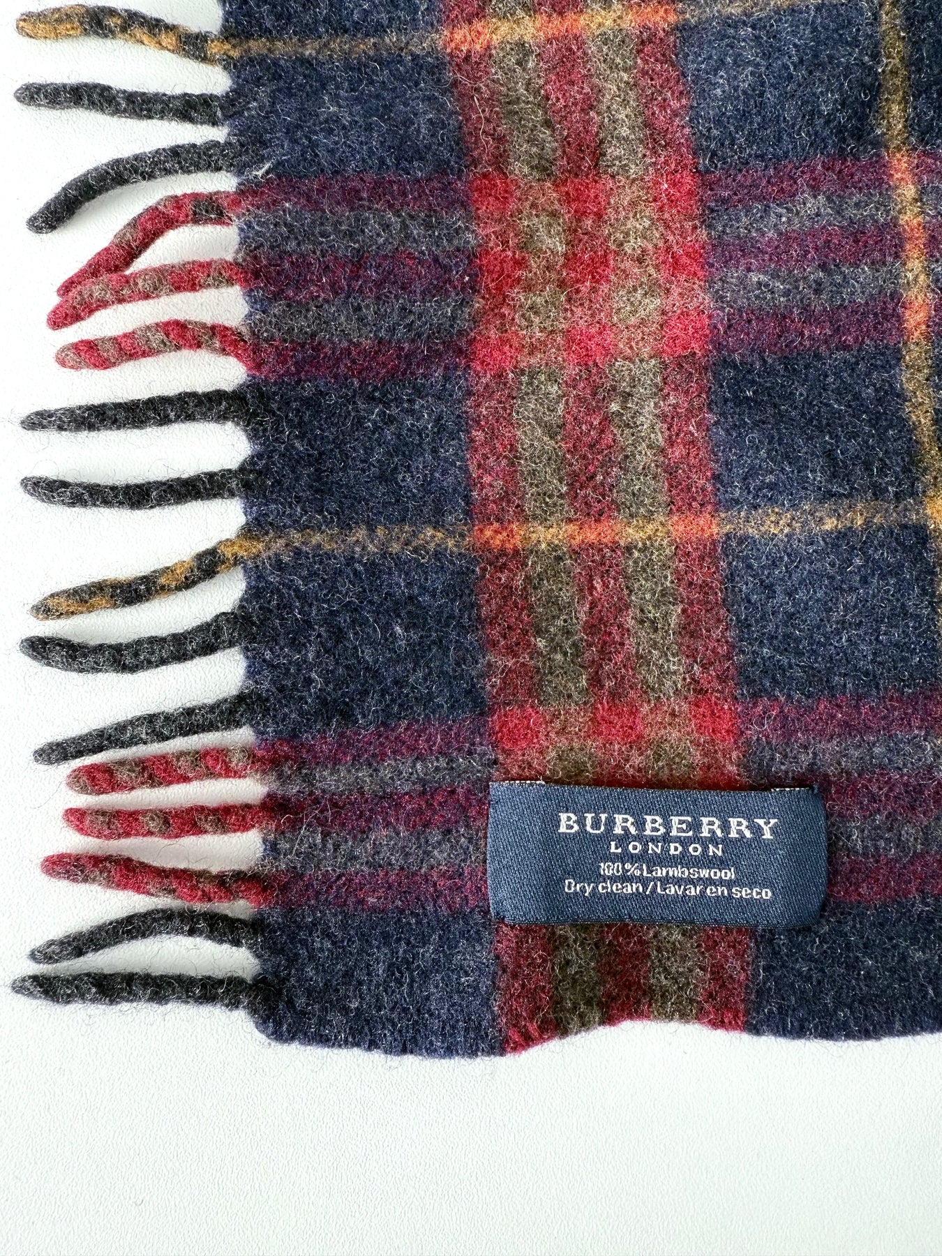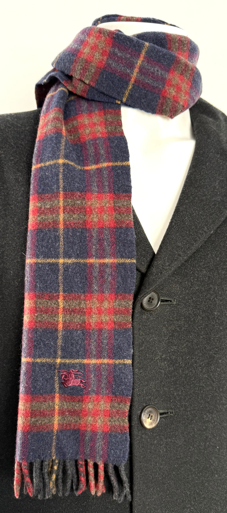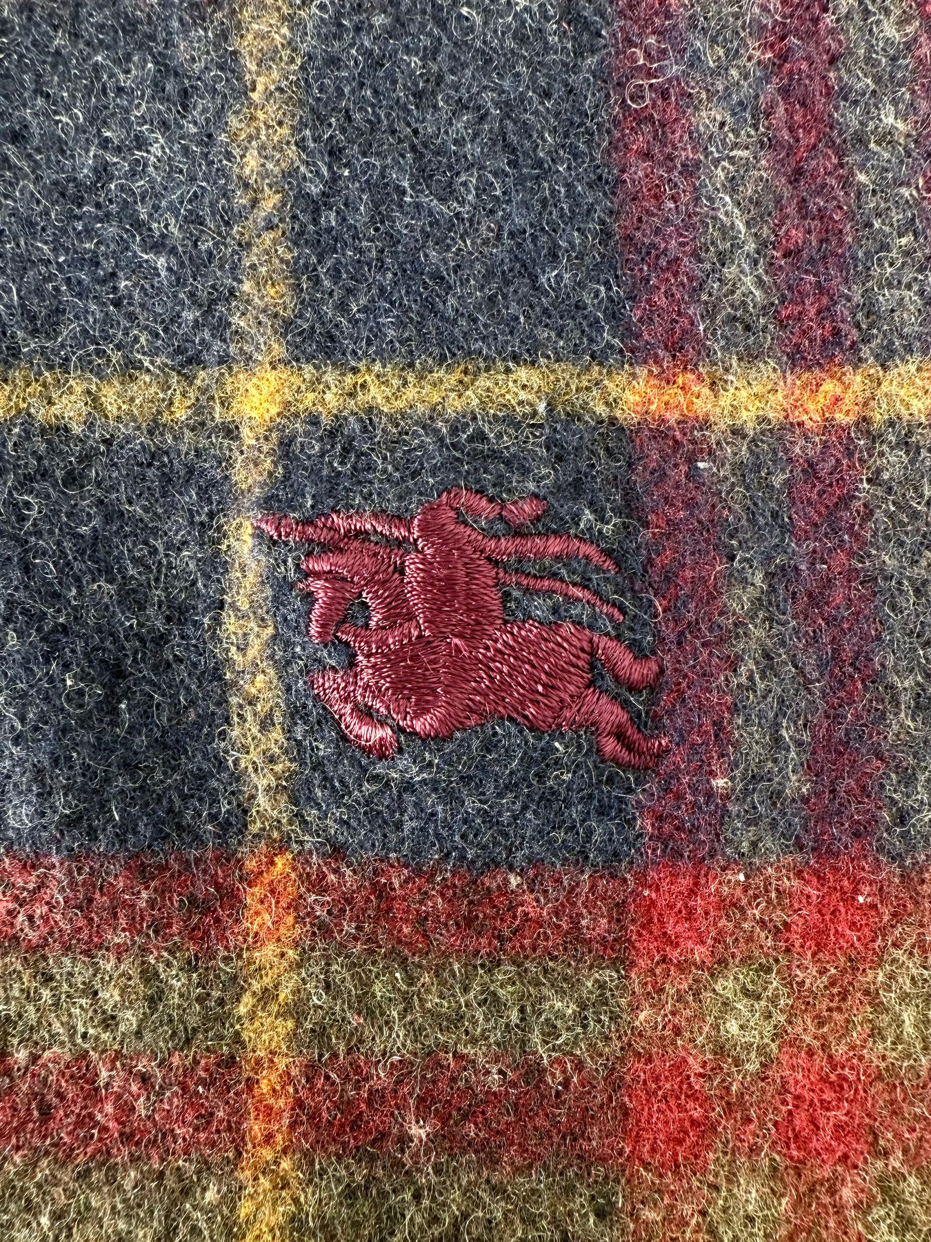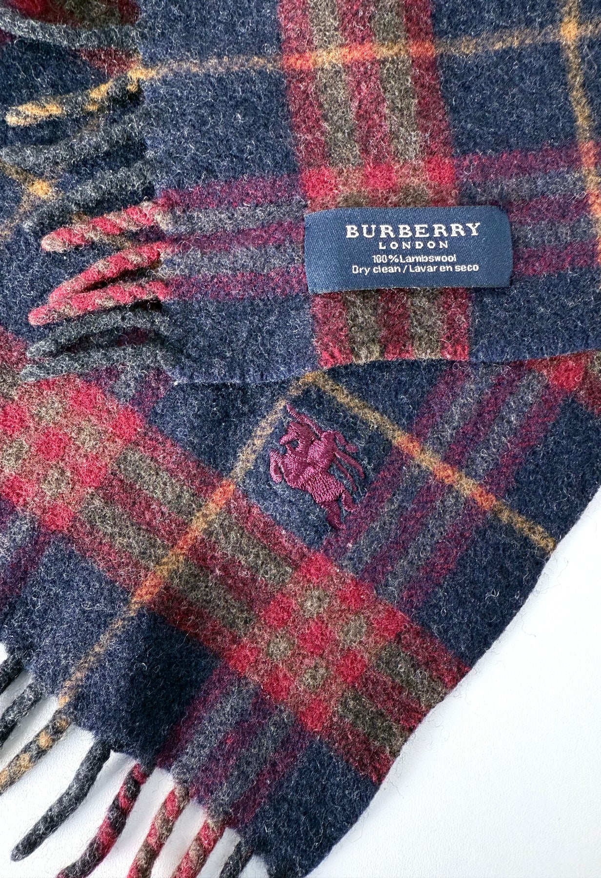 Bufanda Burberry color granate/multicolor en muy buen estado (prácticamente nuevo con poco uso, ligeramente encogida). Gran calidad de lana.