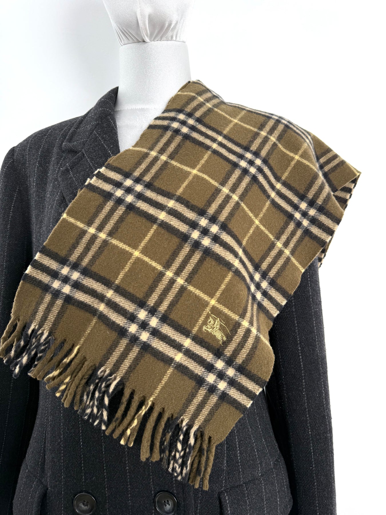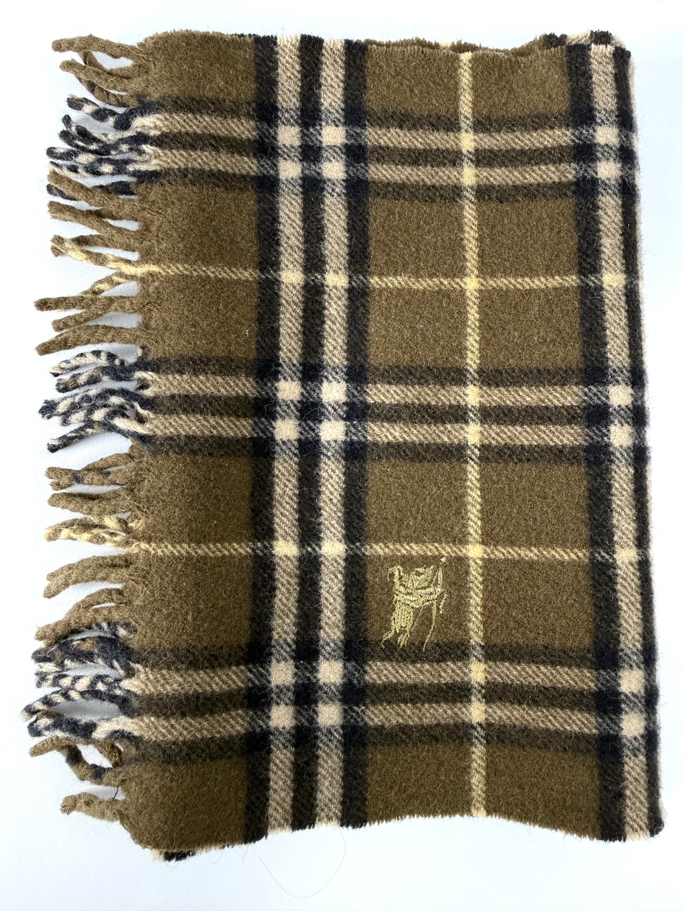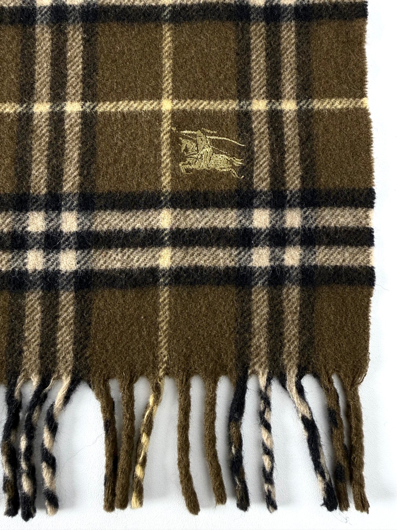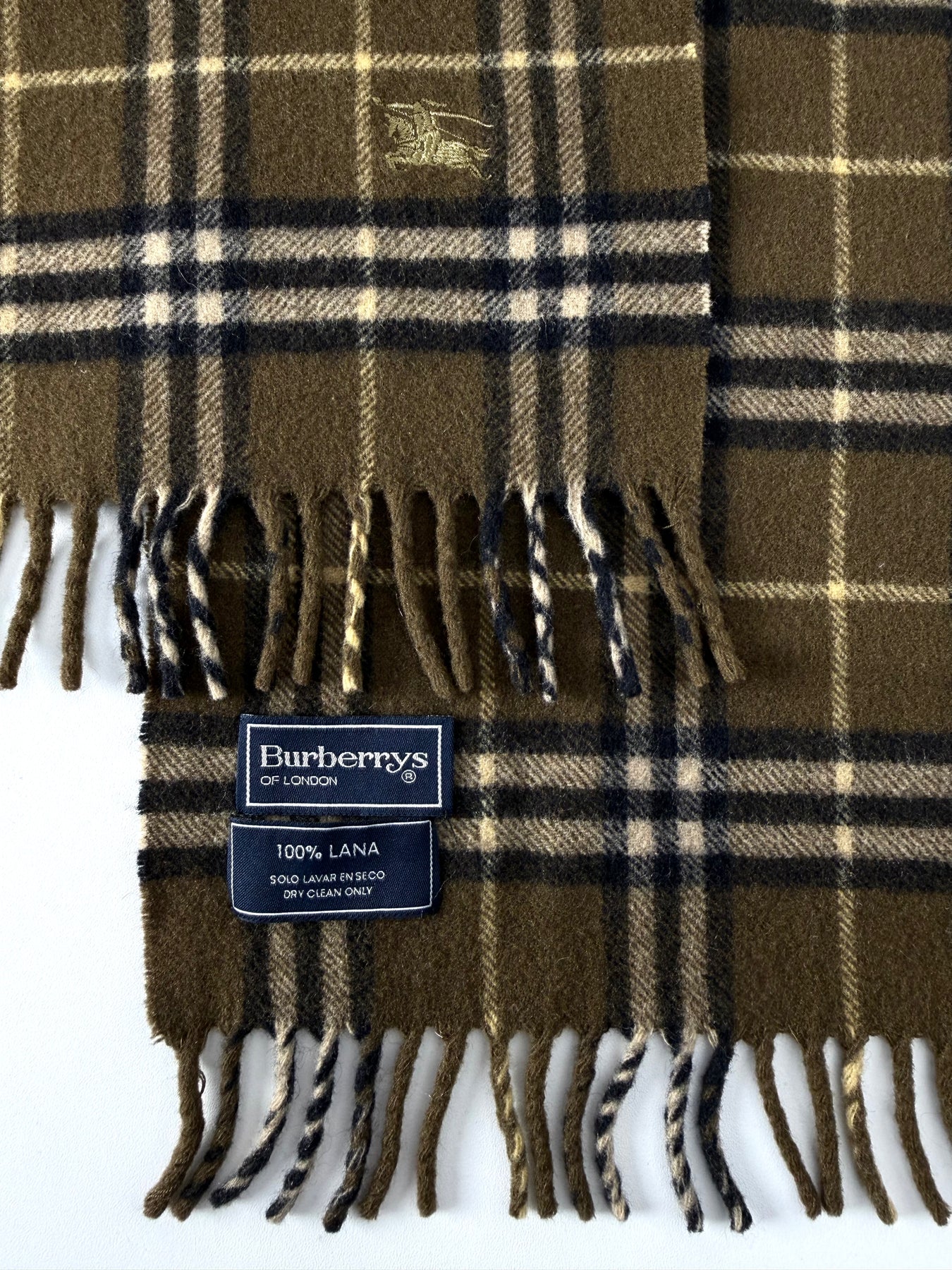 Bufanda Burberry color verde caqui oscuro en perfecto estado (prácticamente nuevo con poco uso). Gran calidad de lana.