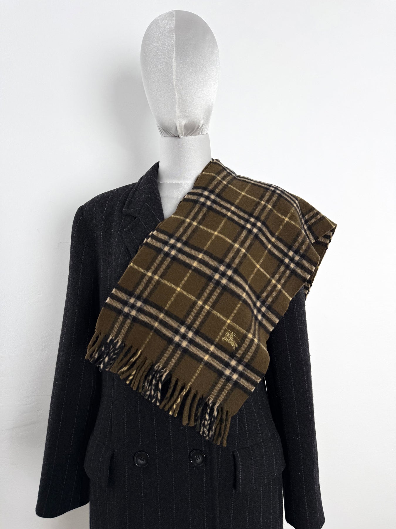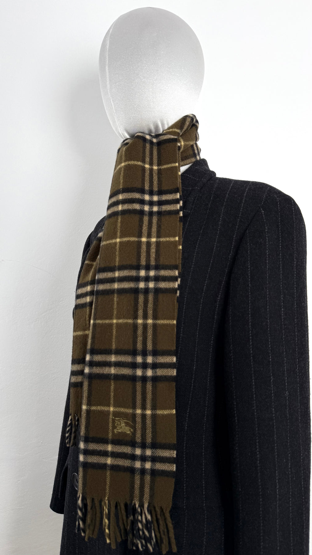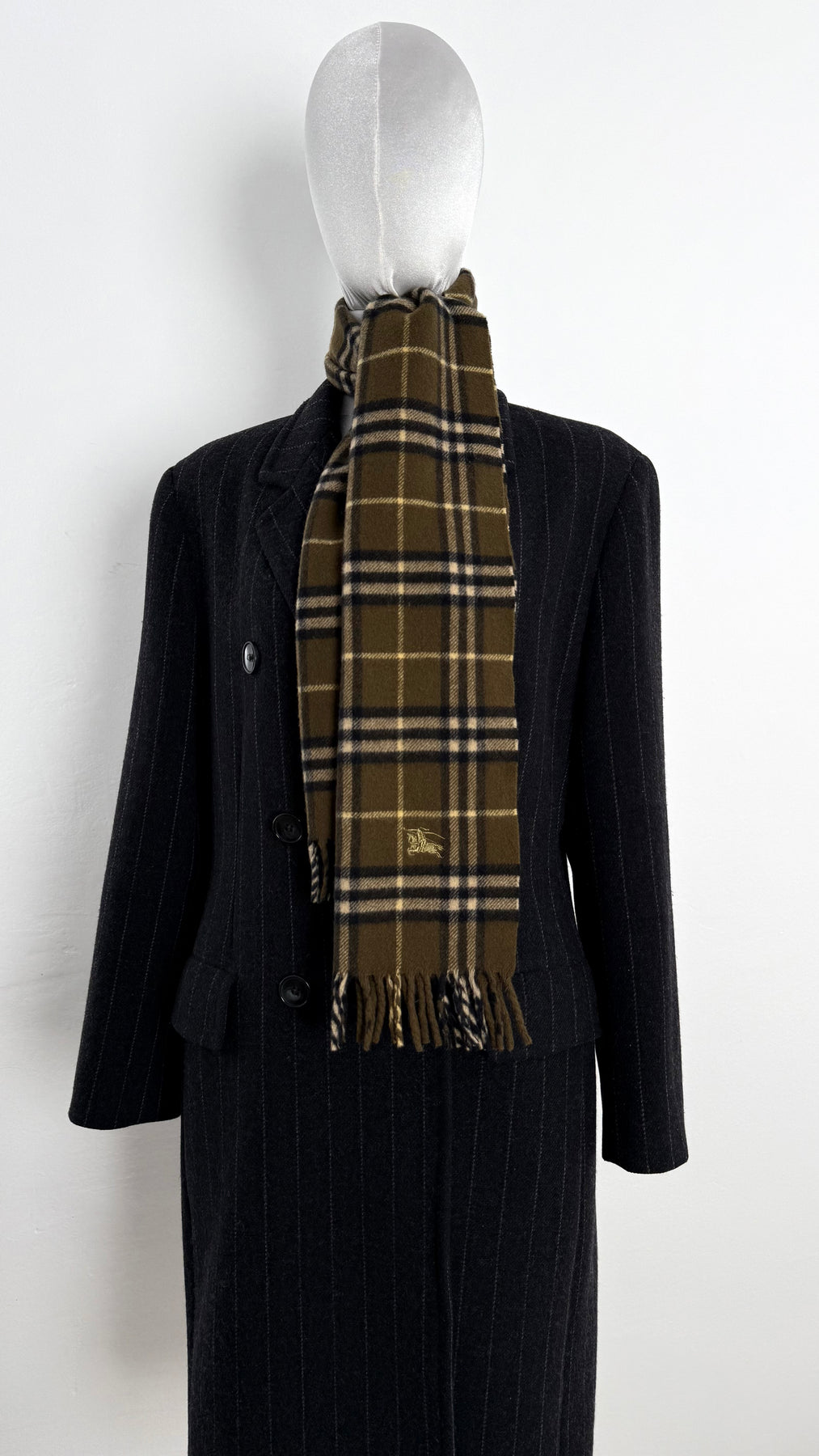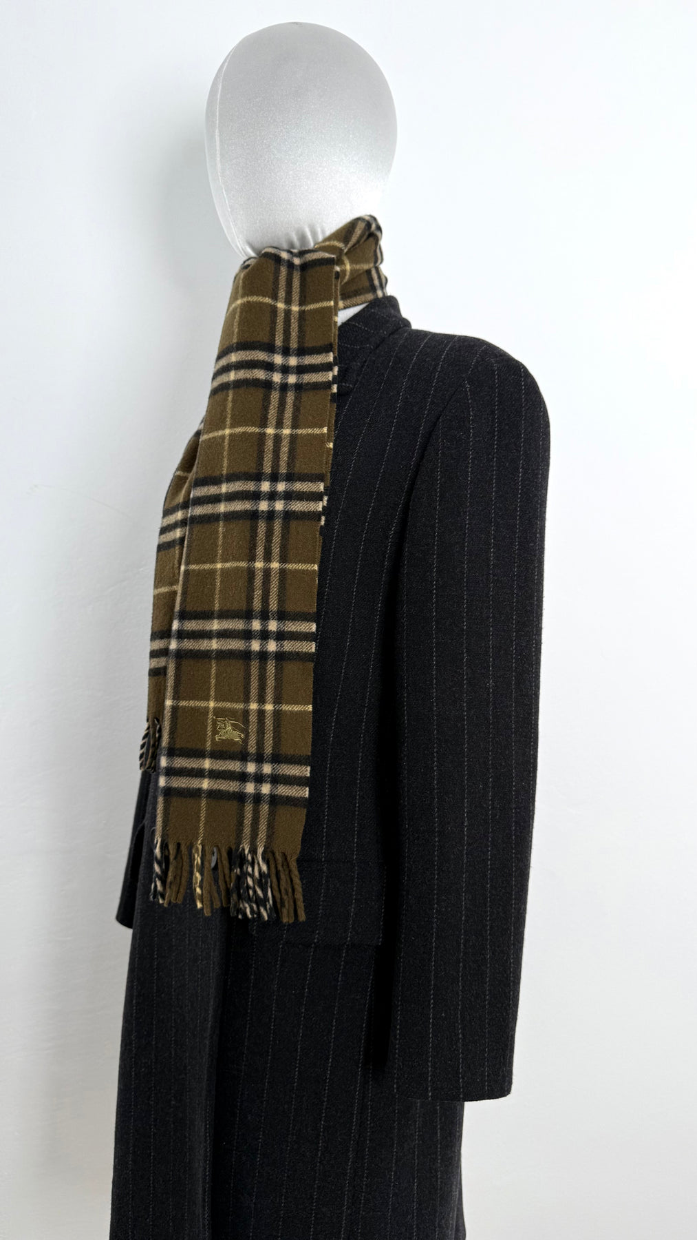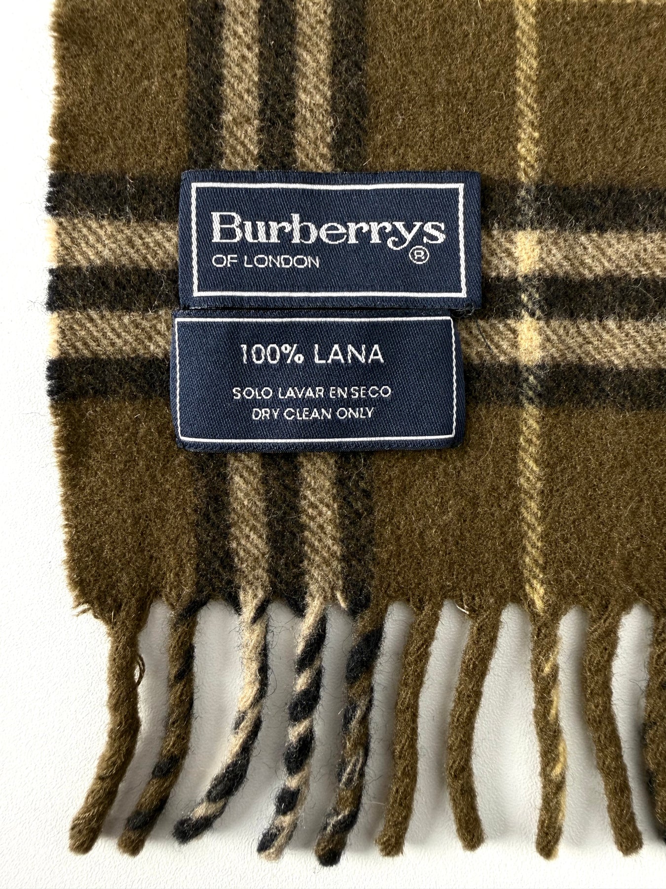 Bufanda Burberry color verde caqui oscuro en perfecto estado (prácticamente nuevo con poco uso). Gran calidad de lana.
