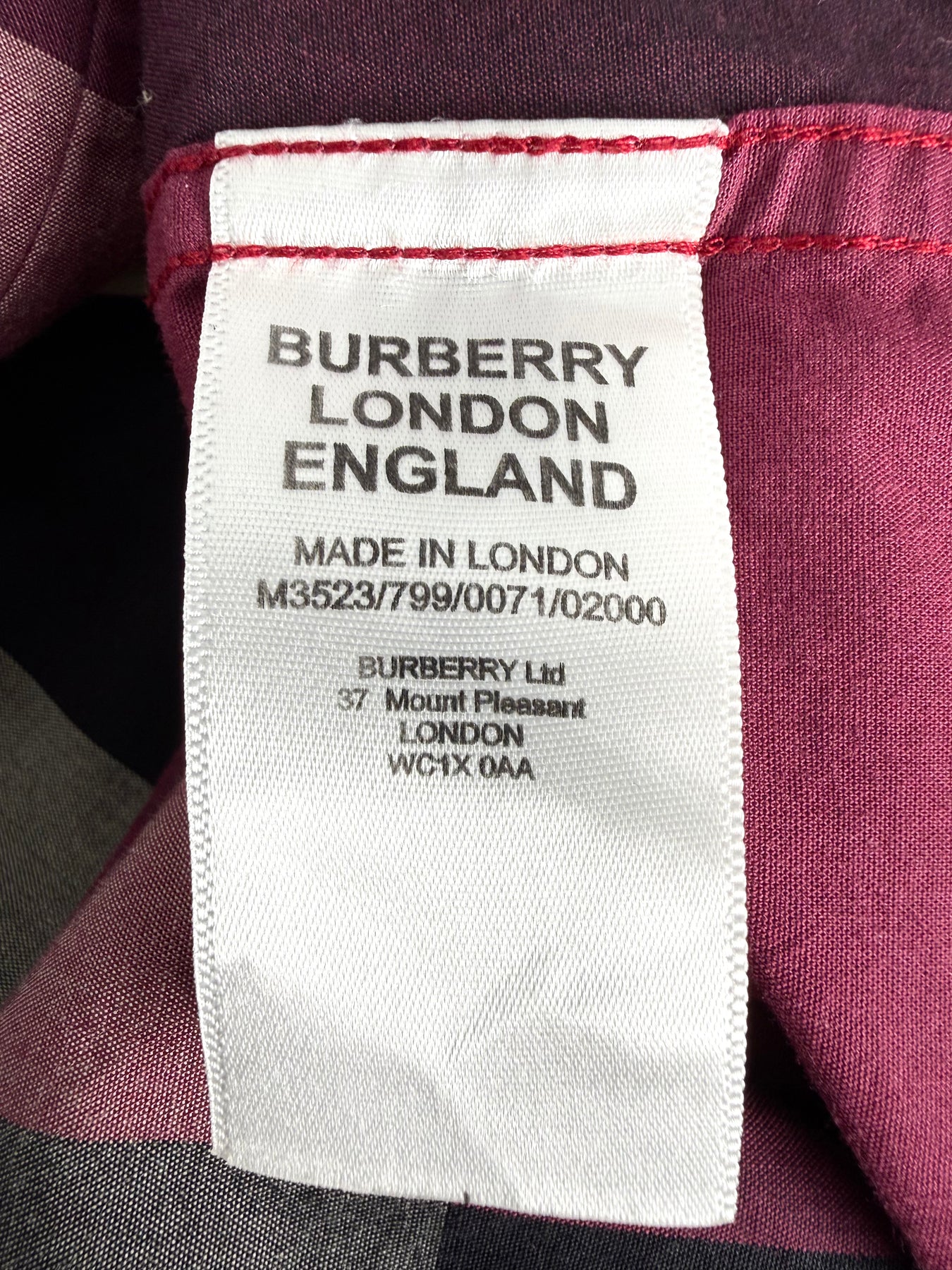 Camisa Burberry color granate talla S en perfecto estado (prácticamente nuevo con poco uso, aunque en la etiqueta marca una M). Gran calidad de algodón, cuenta con todos los botones originales.