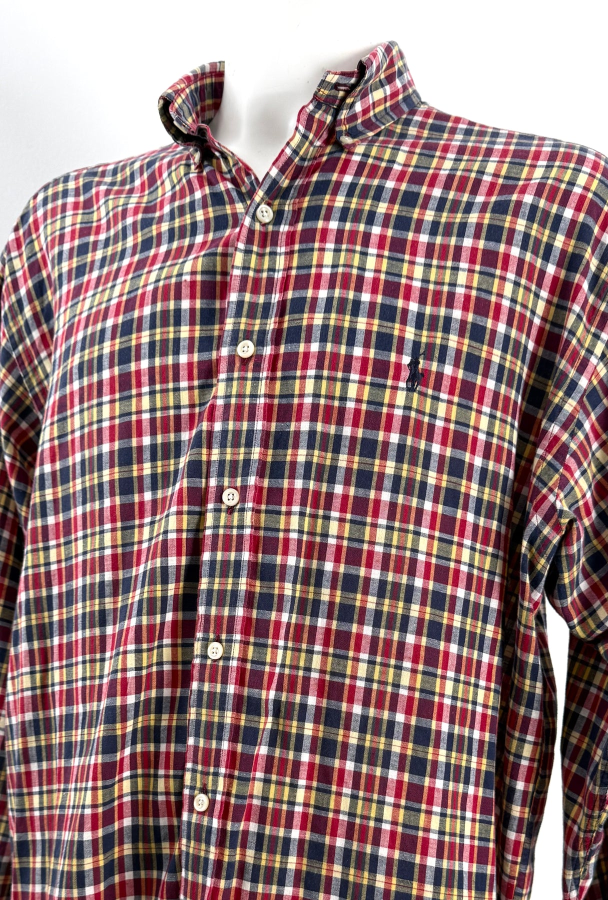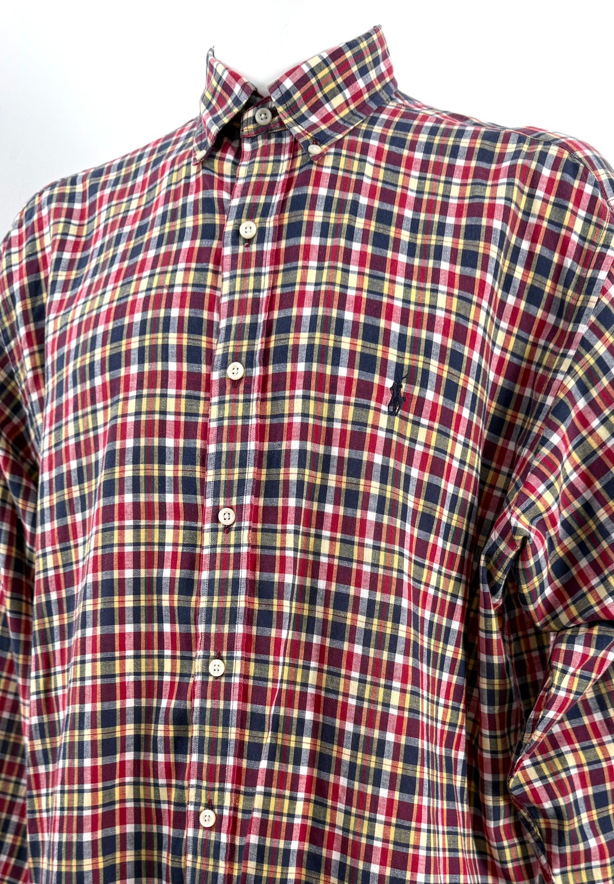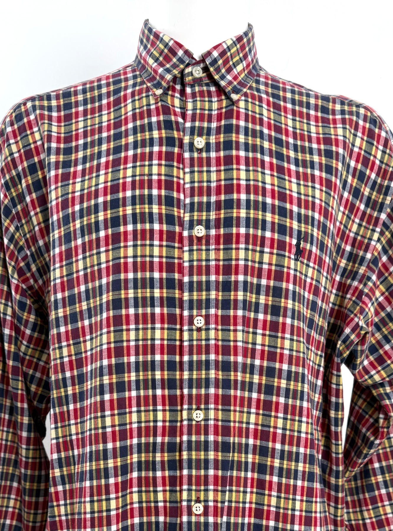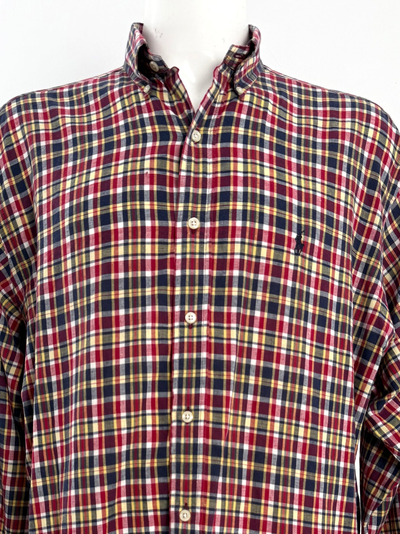 Camisa Ralph Lauren multicolor rojo, azul, amarillo talla XXL en perfecto estado (prácticamente nuevo con poco uso, sin etiqueta de composición). Gran calidad de algodón, cuenta con todos los botones originales.