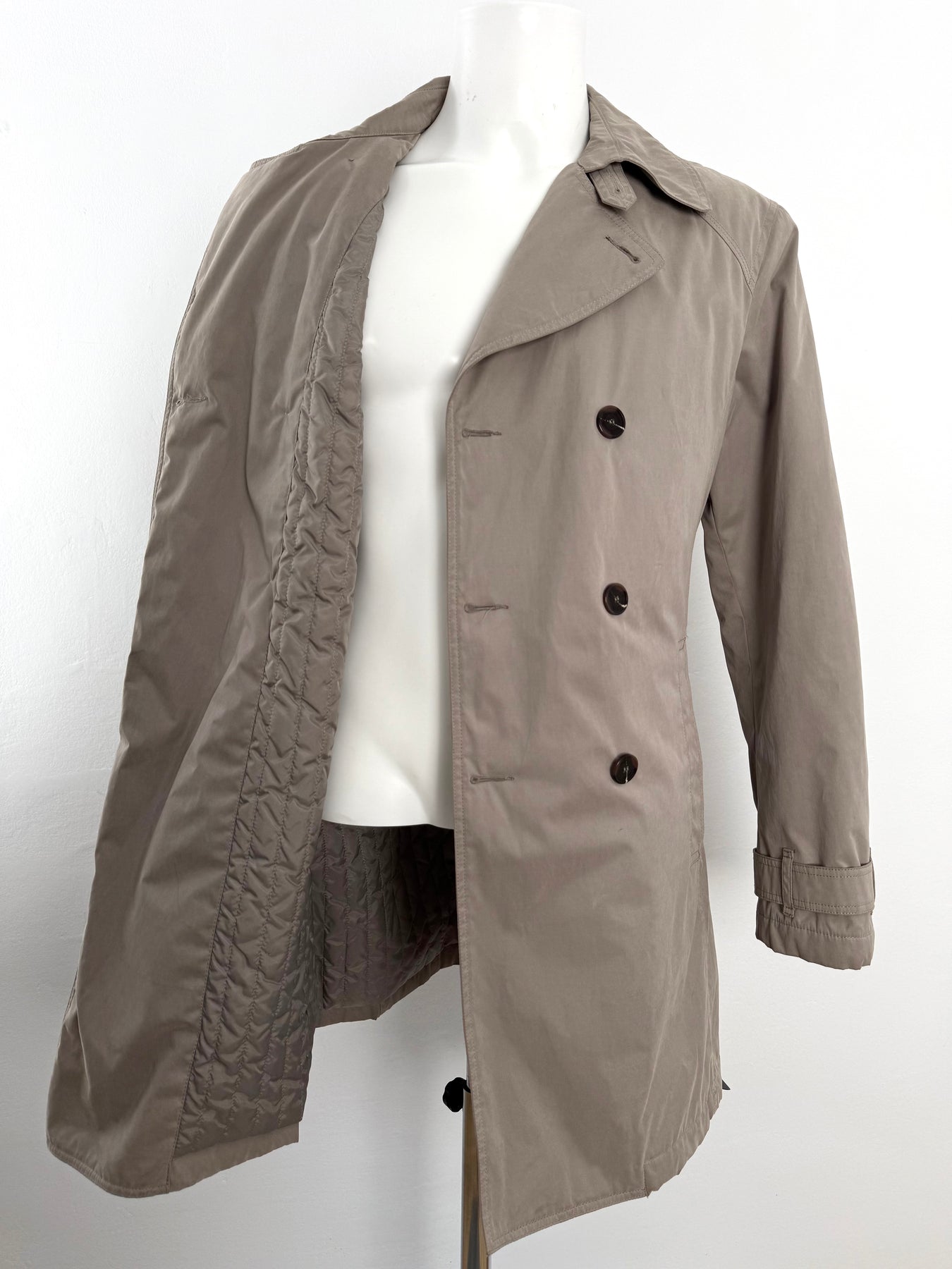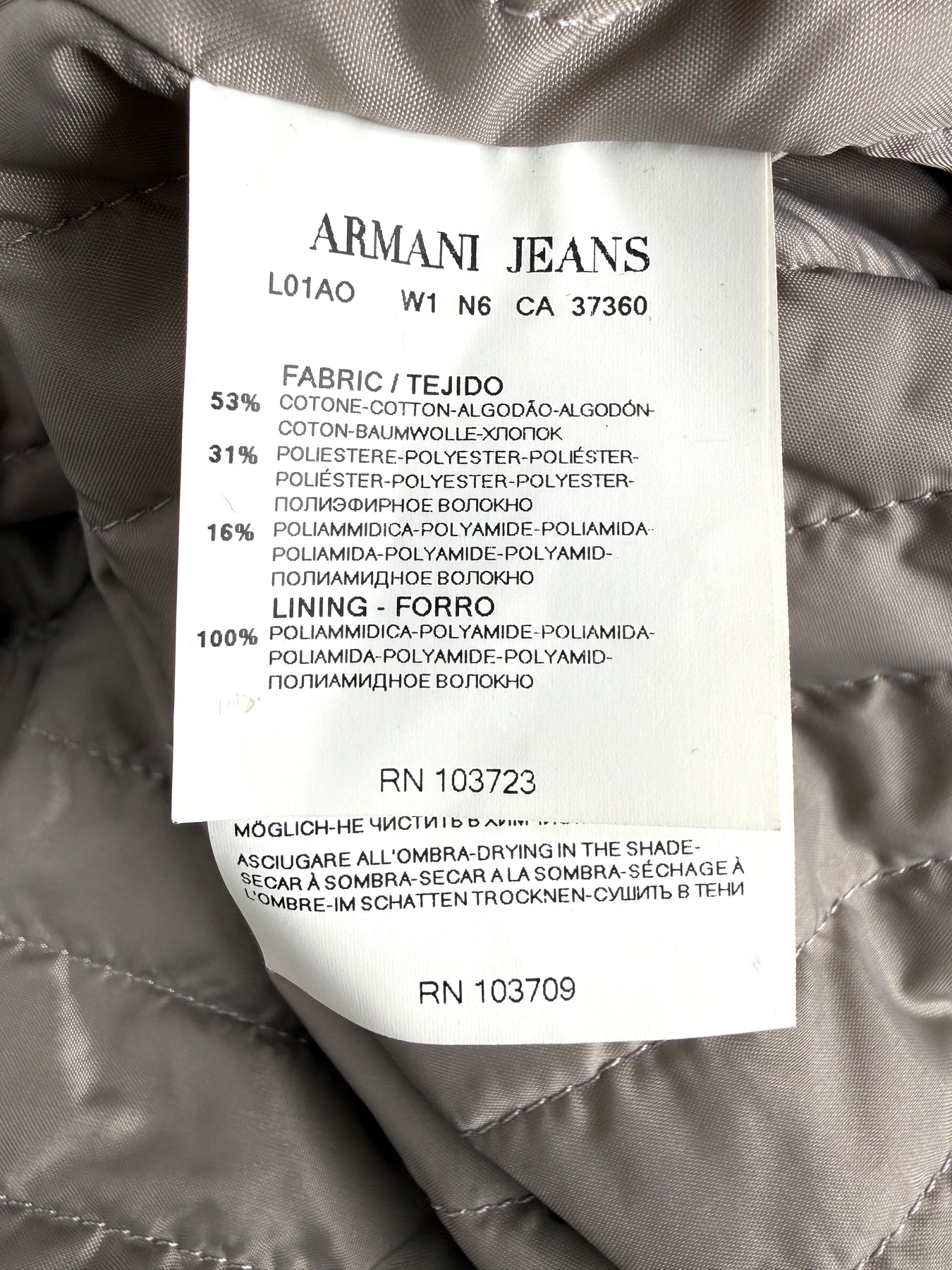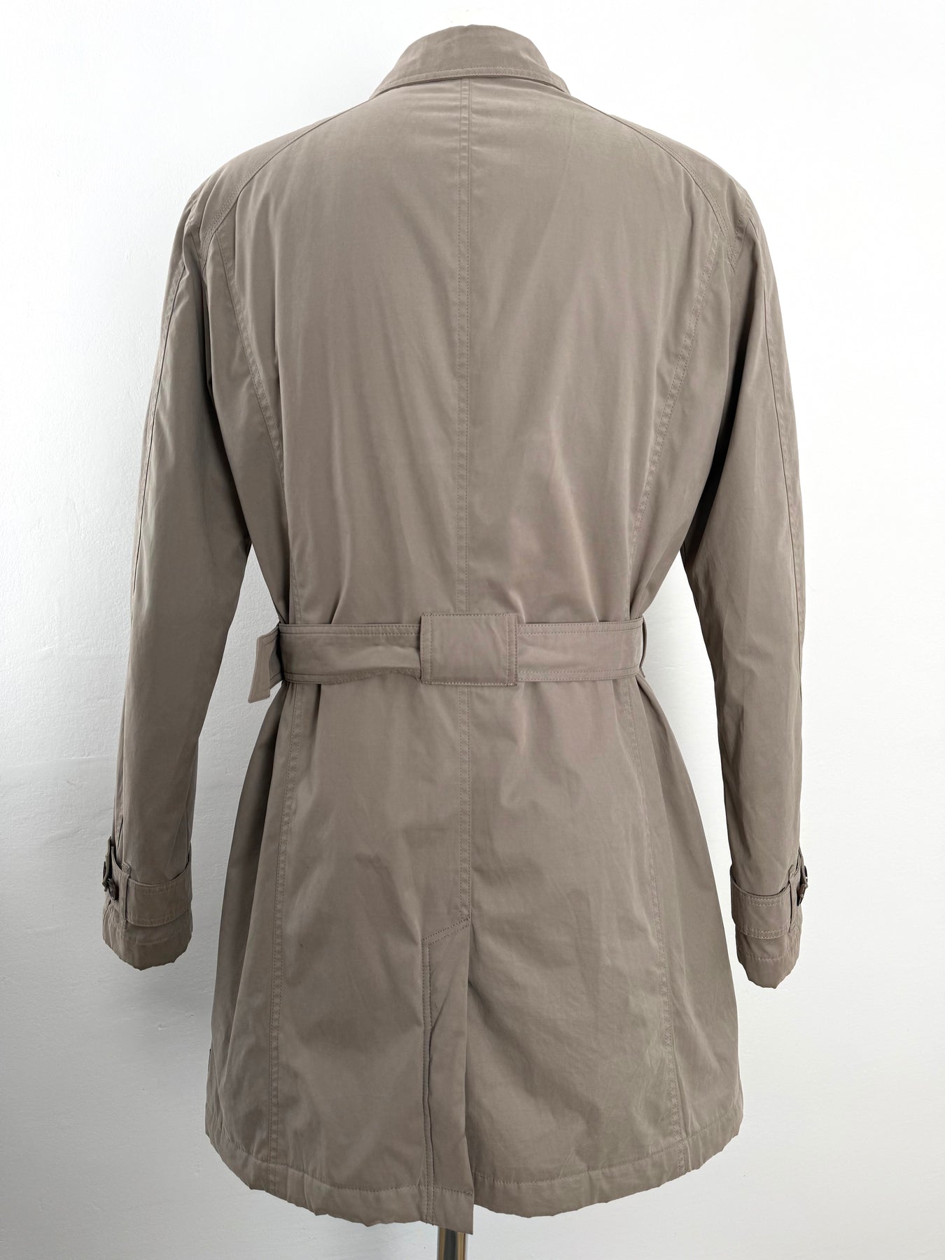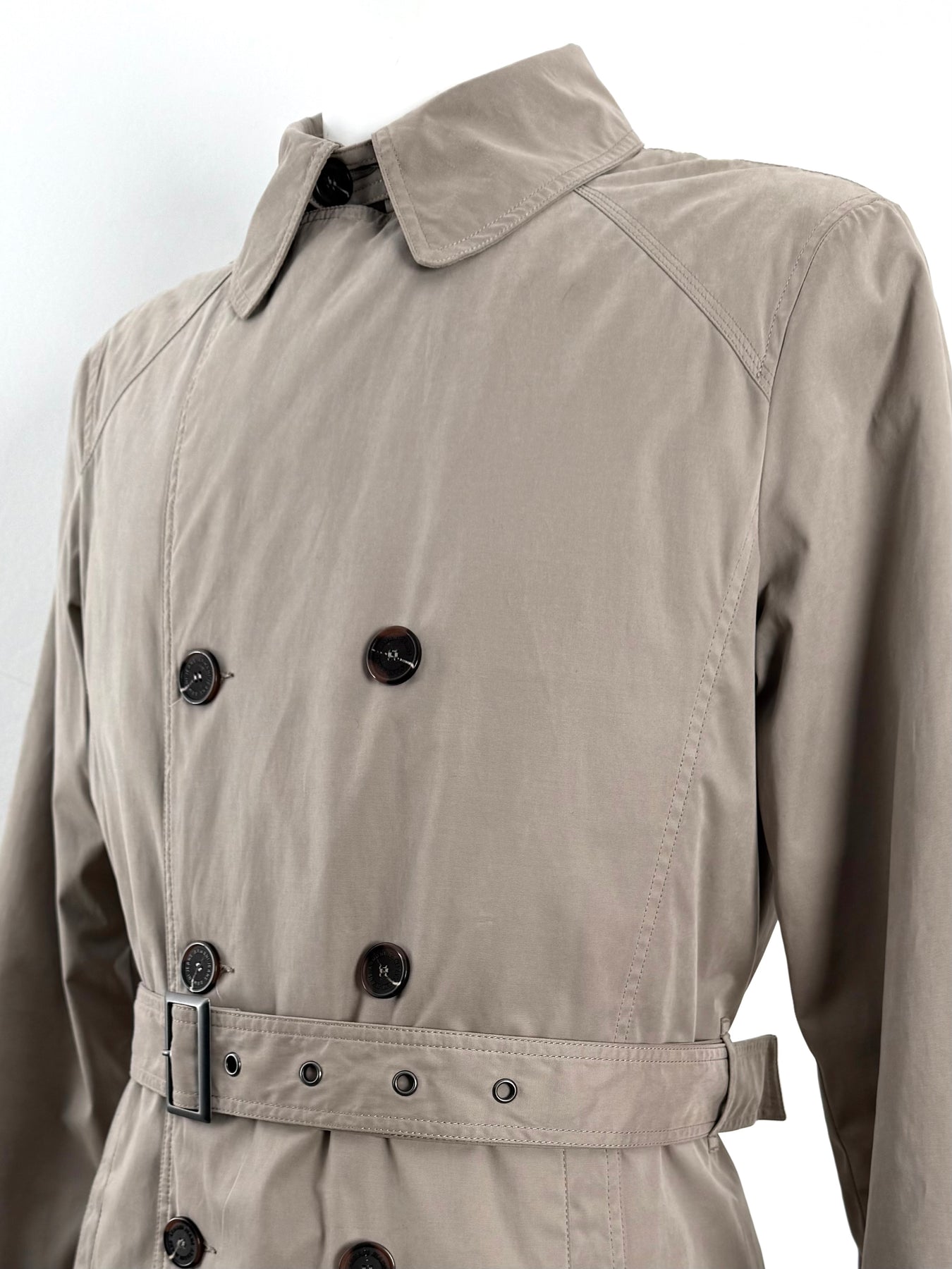 Gabardina Armani Jeans color beige talla 52 (M, aunque en la etiqueta marque una L) en perfecto estado (prácticamente nuevo con poco uso). Gran calidad de algodón, poliamida y poliéster con forro interior de poliamida y relleno de poliéster, cuenta con todos los botones originales.