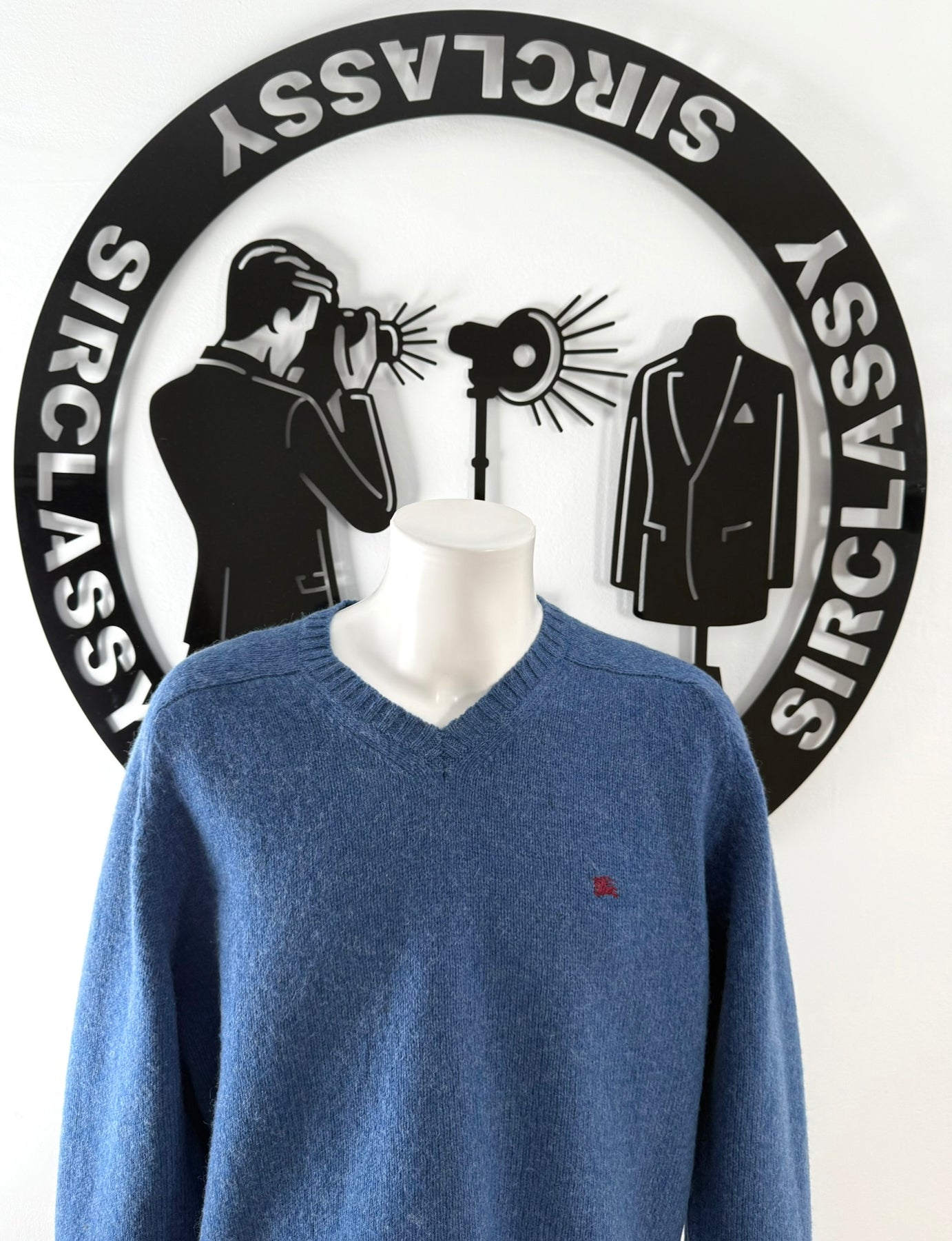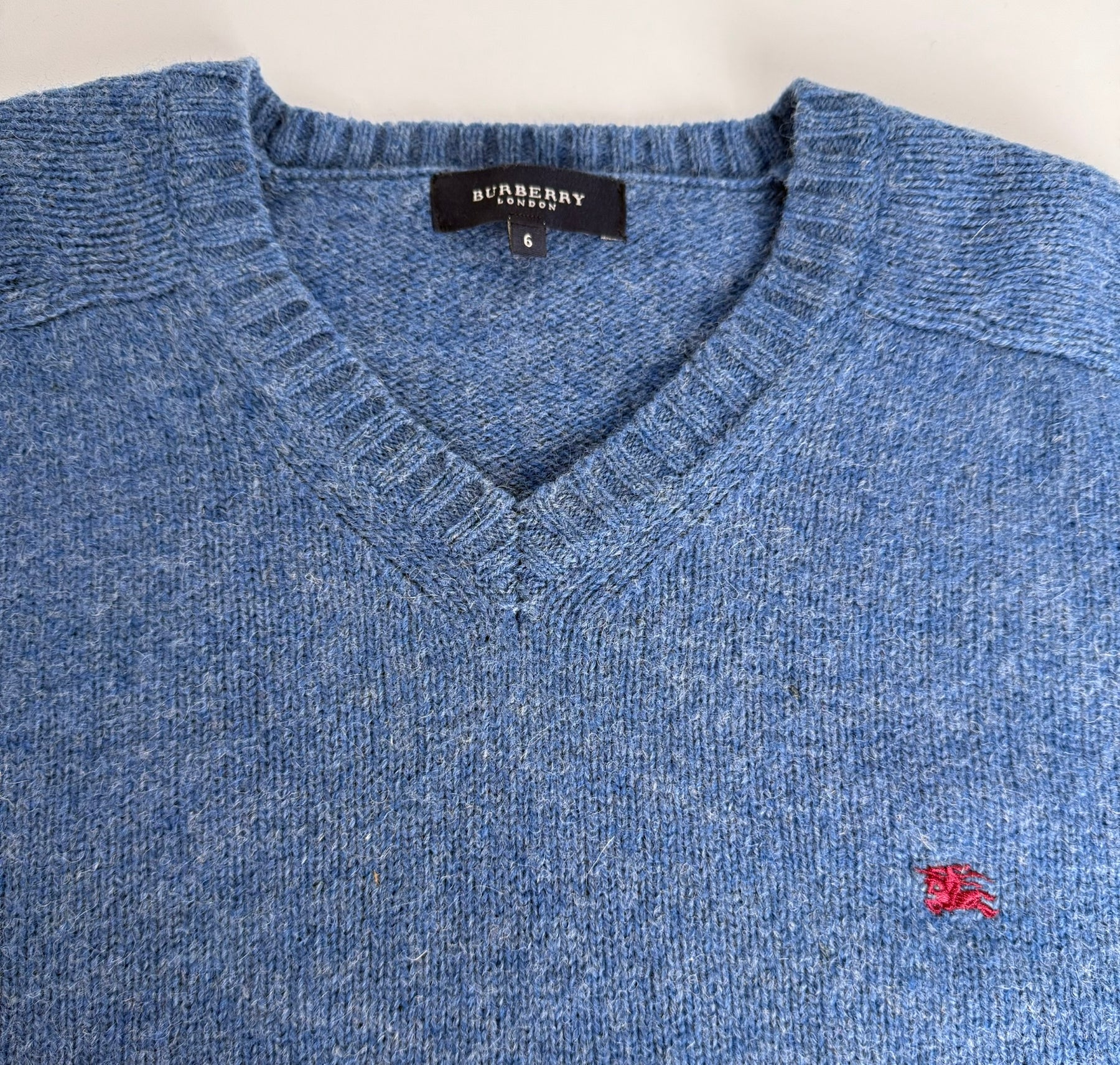 Jersey de lana Burberry color azul talla 6 (L) en perfecto estado (prácticamente nuevo con poco uso). Gran calidad de lana.