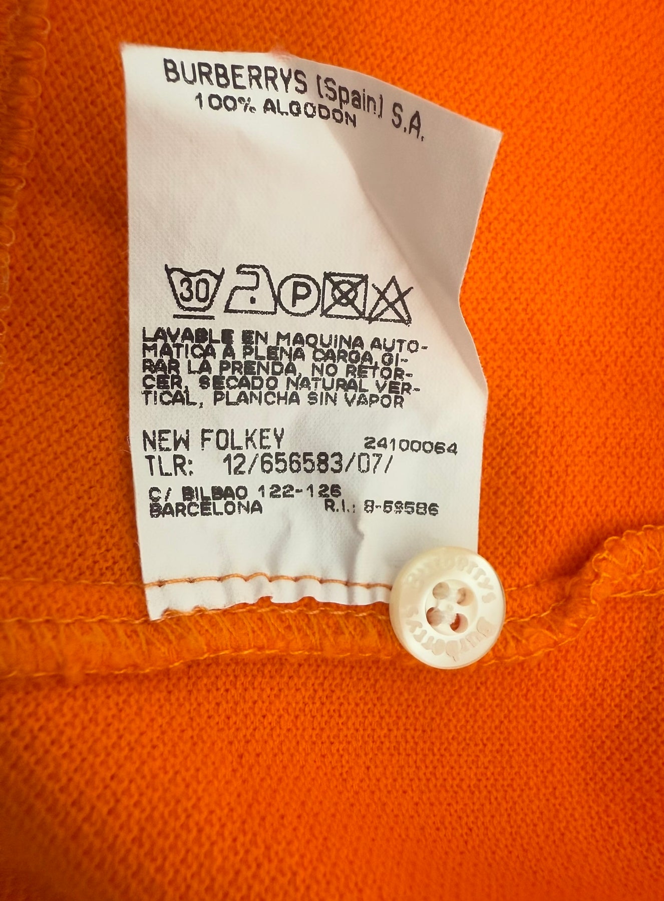 Polo de algodón Burberrys color naranja talla 7 (XL) en perfecto estado (prácticamente nuevo con poco uso). Gran calidad de algodón, con todos los botones originales.