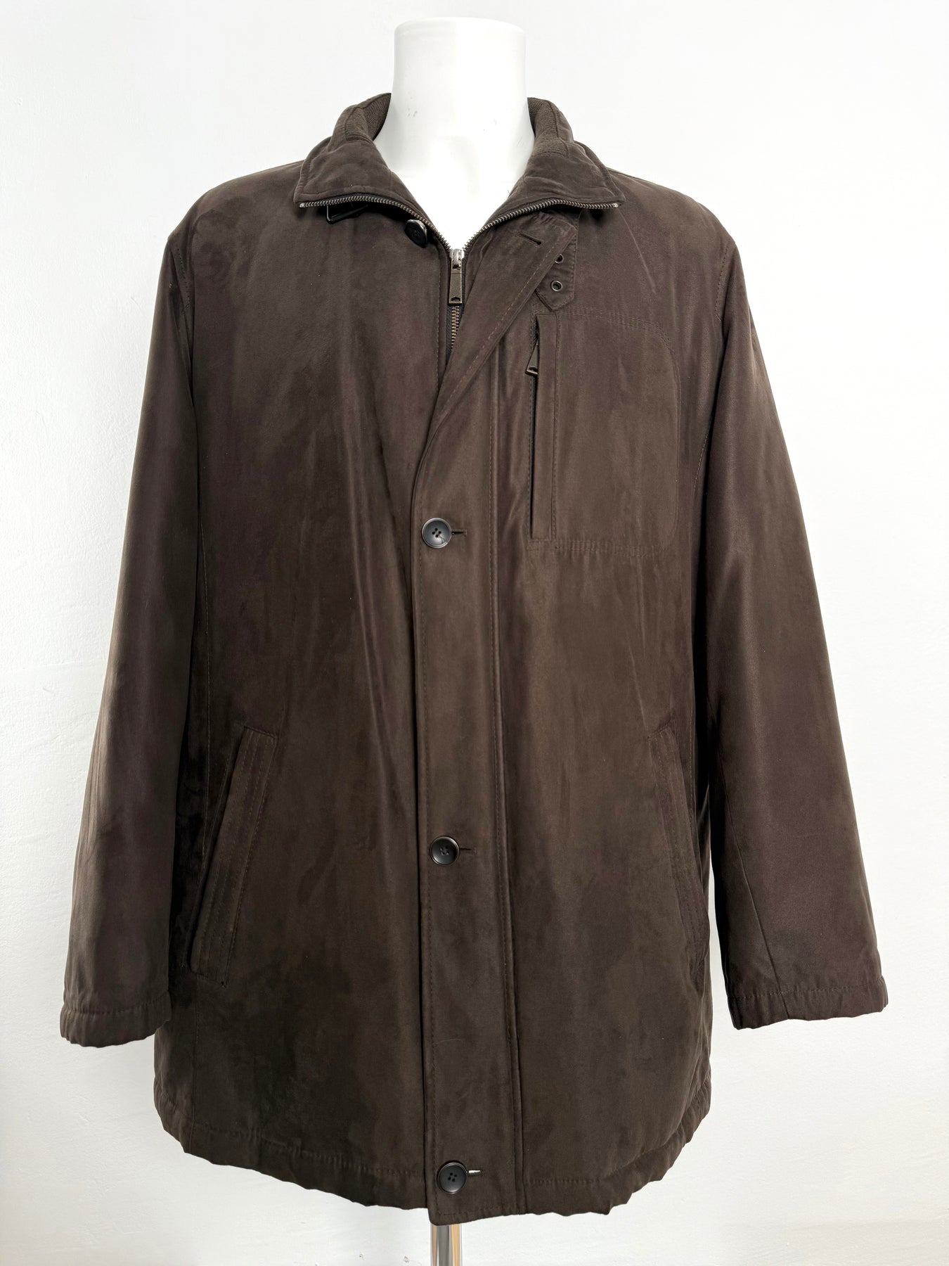 Abrigo Bugatti color marrón oscuro talla 56 (XXL) en perfecto estado (prácticamente nuevo con poco uso). Gran calidad de poliéster con forro interior de poliamida y poliéster, cuenta con todos los botones y cremalleras originales.