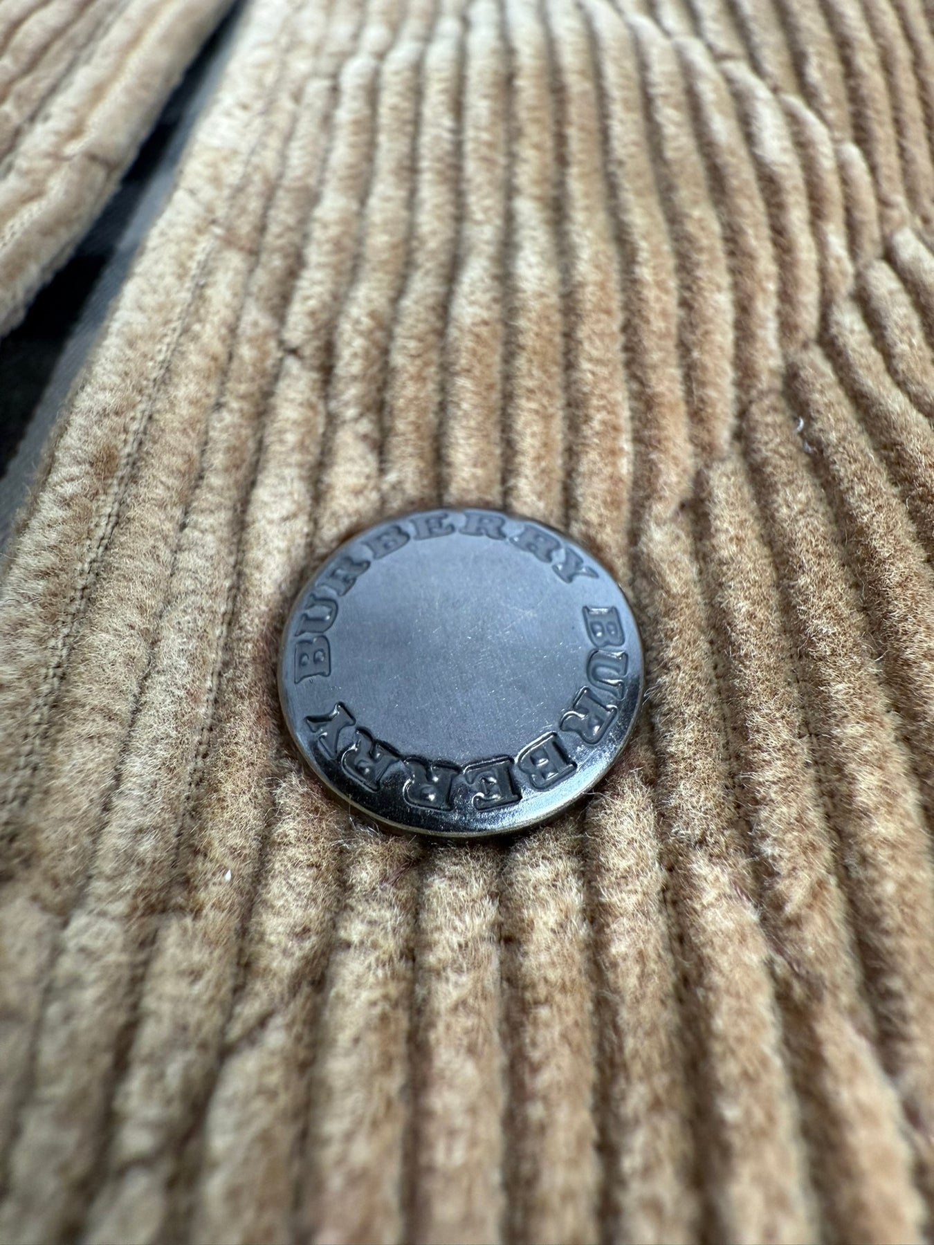 Abrigo Burberry color camel talla 54 (L) en muy buen estado (prácticamente nuevo con solo una pequeña mancha en la parte frontal que se intentó quitar). Gran calidad de algodón con forro interior de poliéster y algodón, cuenta con todos los botones originales.