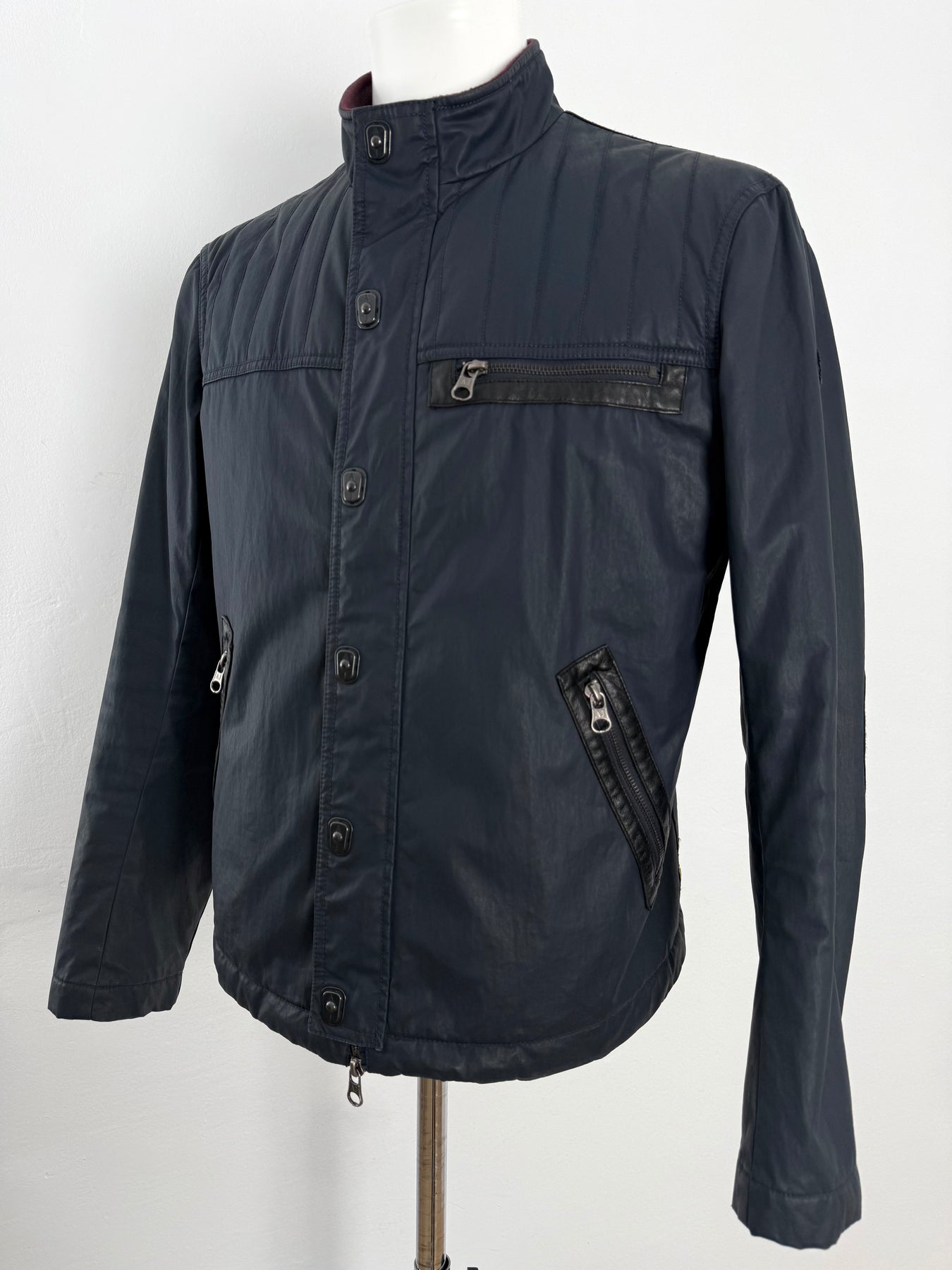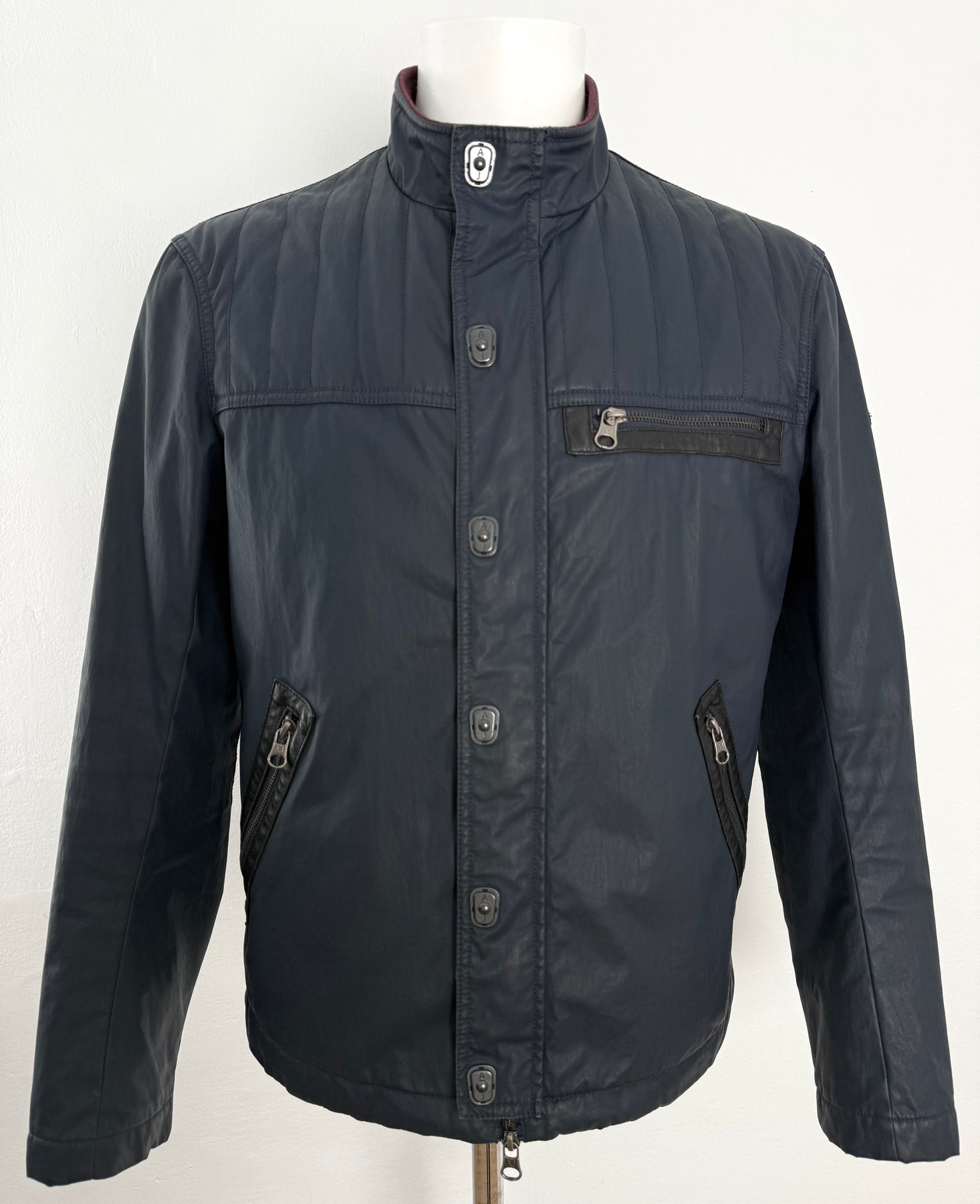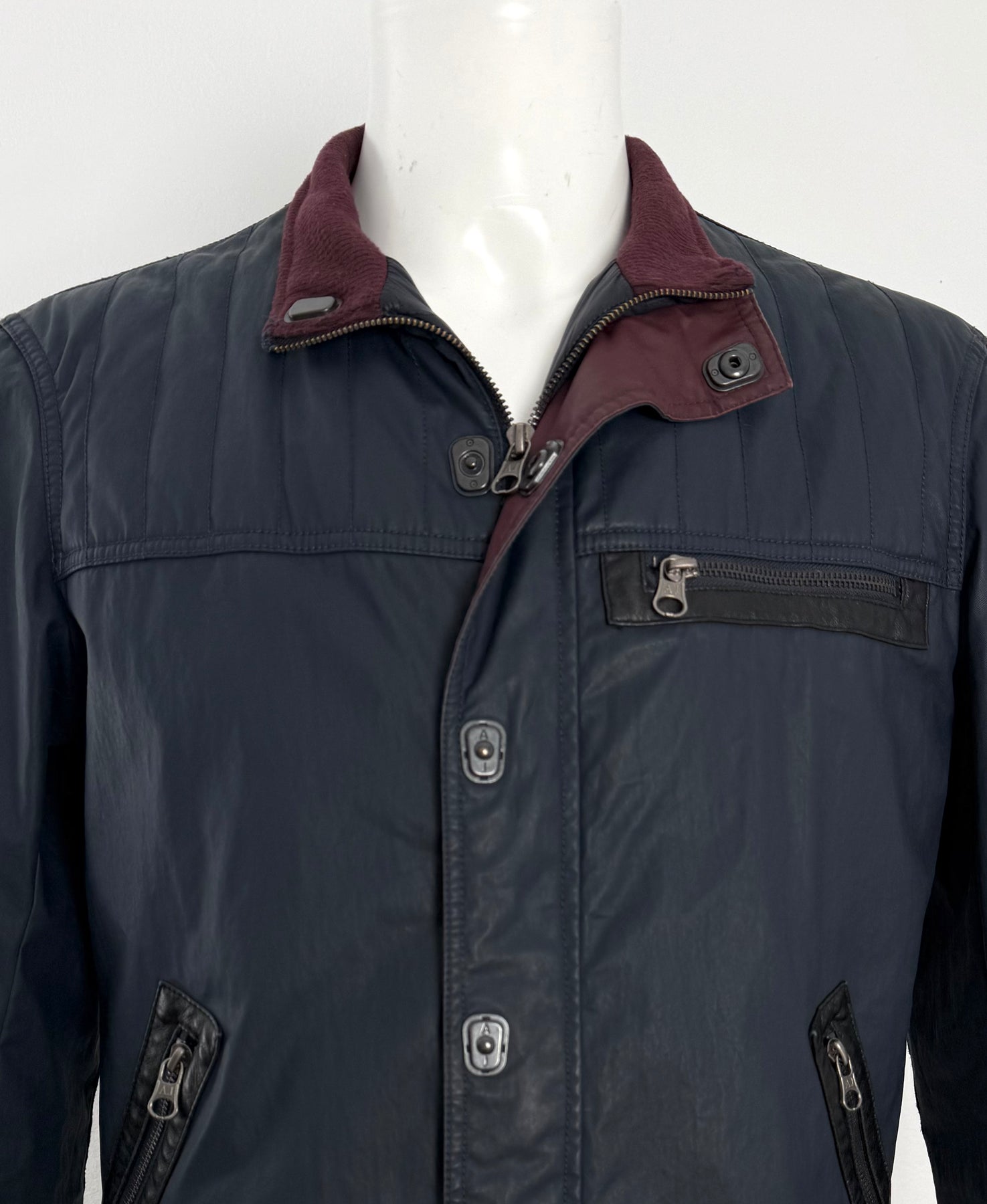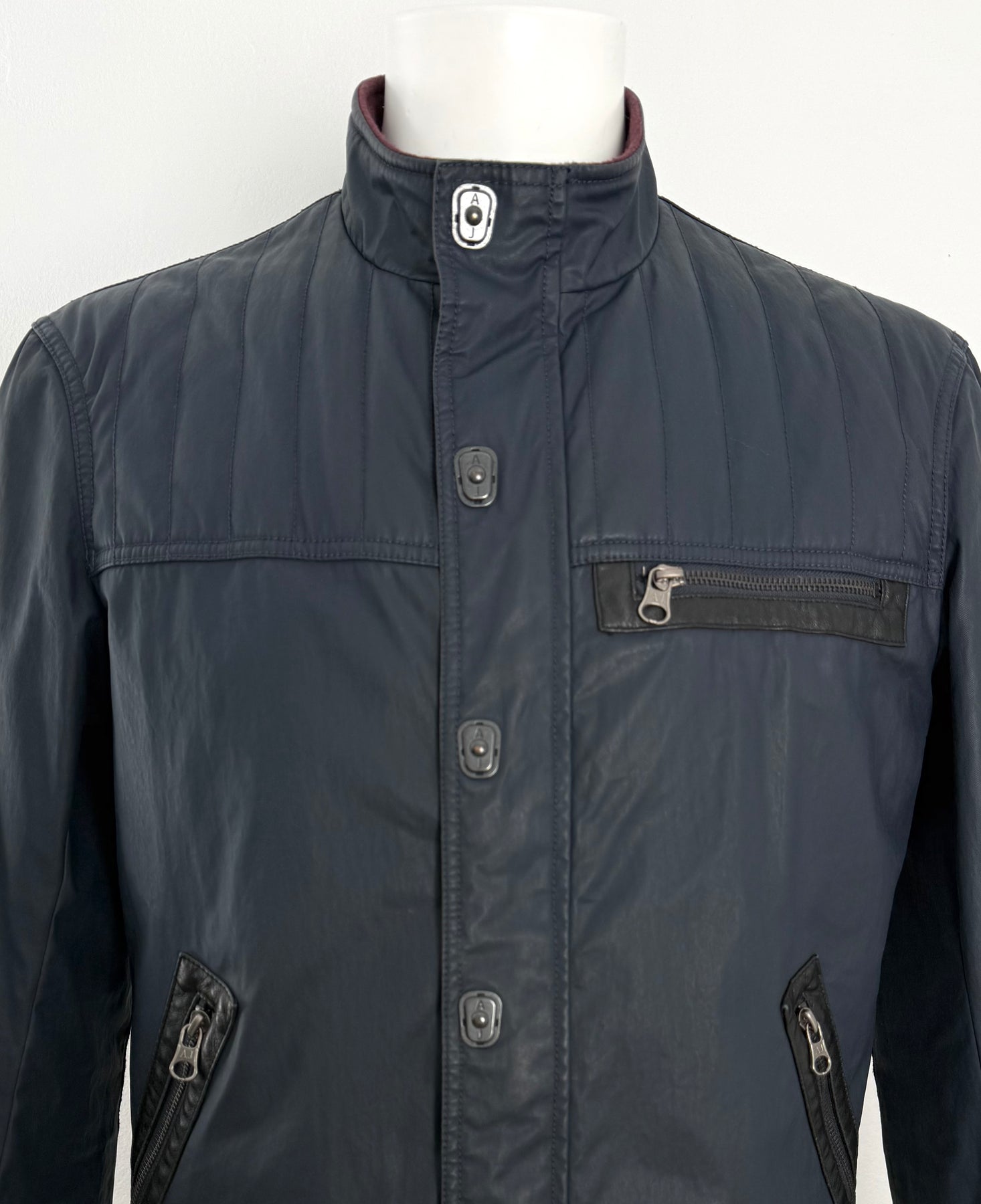 Cazadora acolchada Armani Jeans color azul oscuro talla 52 (M) en perfecto estado (prácticamente nuevo con poco uso, etiqueta de composición cortada). Gran calidad de poliéster, cuenta con todos los botones y cremalleras originales.