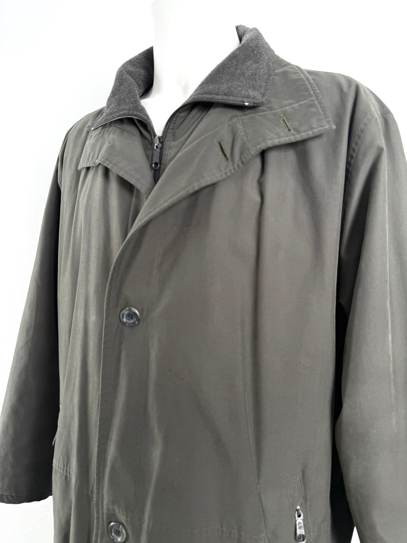 Gabardina Bugatti color caqui talla 52 (XL) en perfecto estado (prácticamente nuevo con poco uso). Gran calidad de poliéster y poliamida con forro interior de lana, cuenta con todos los botones y cremalleras originales.