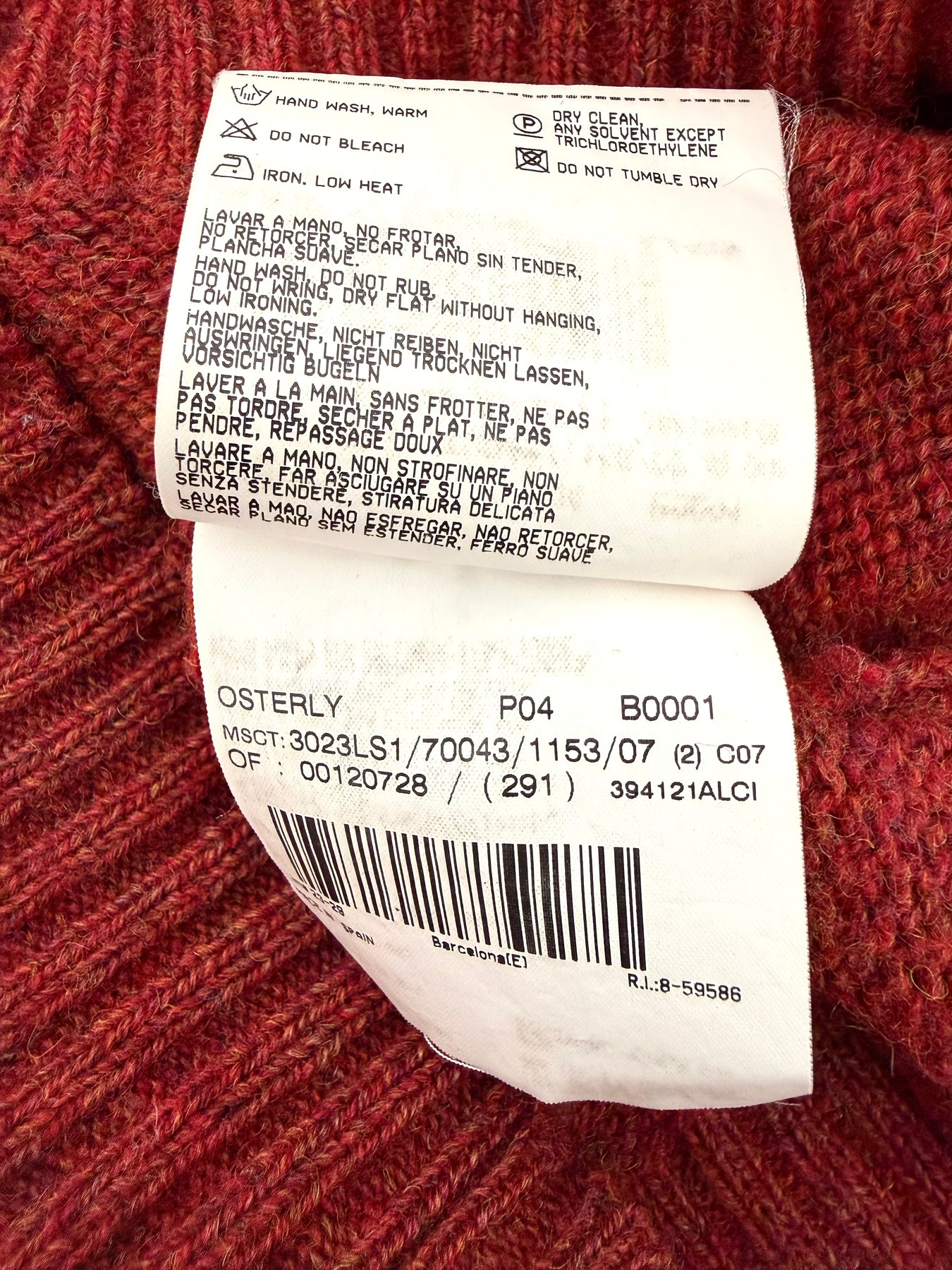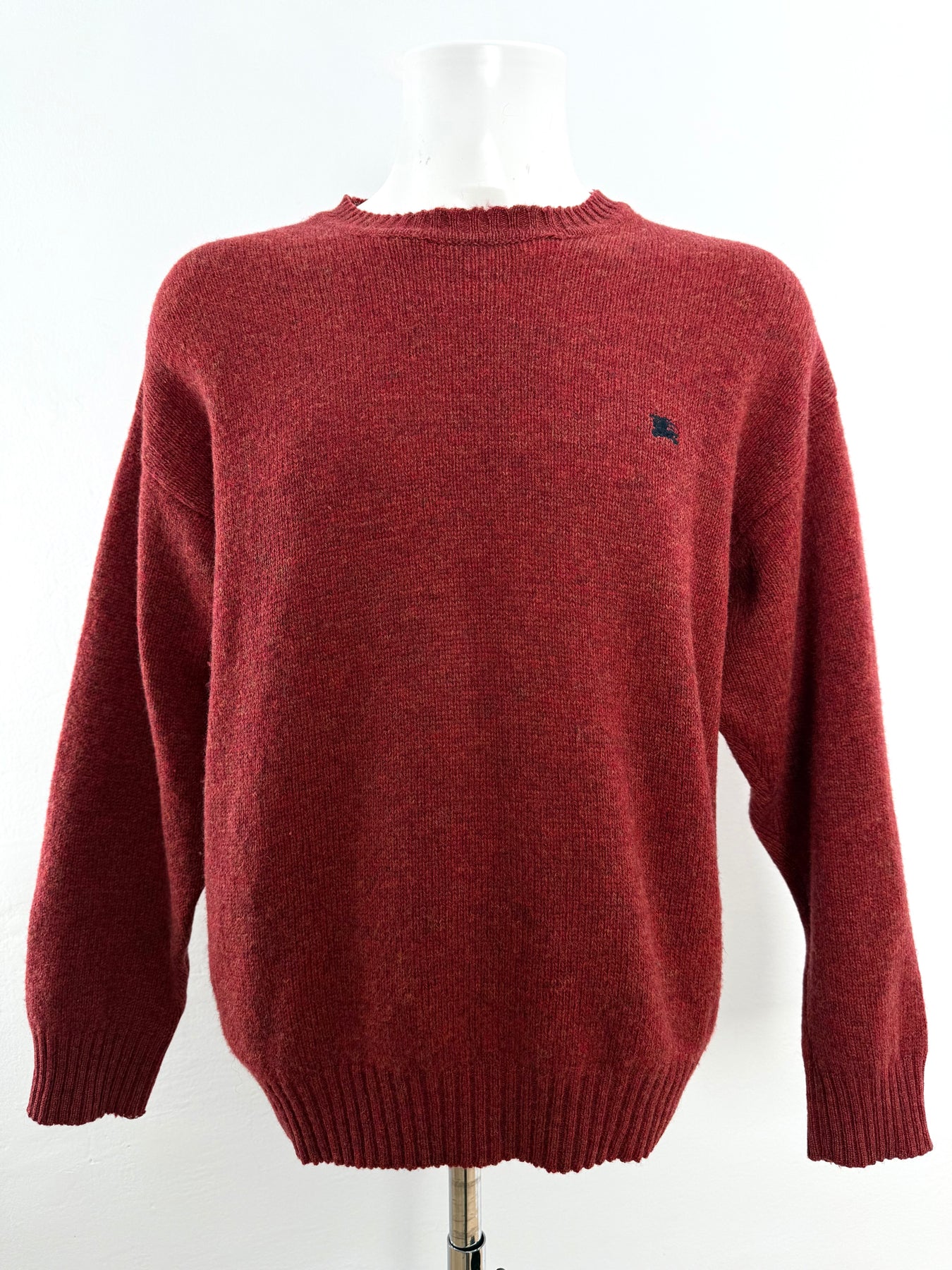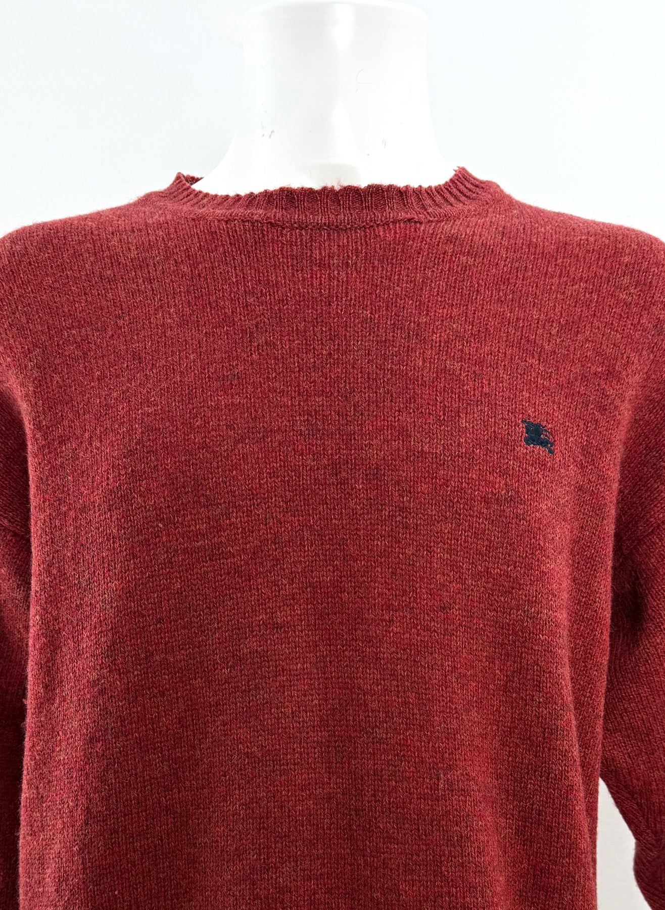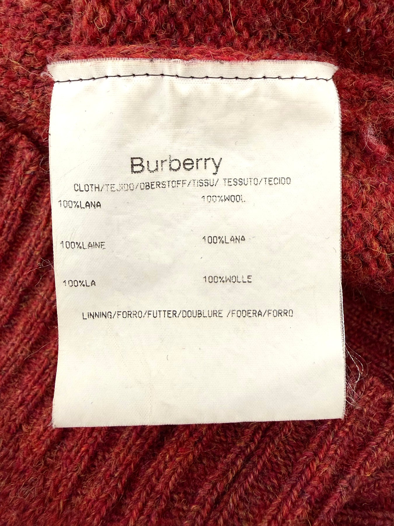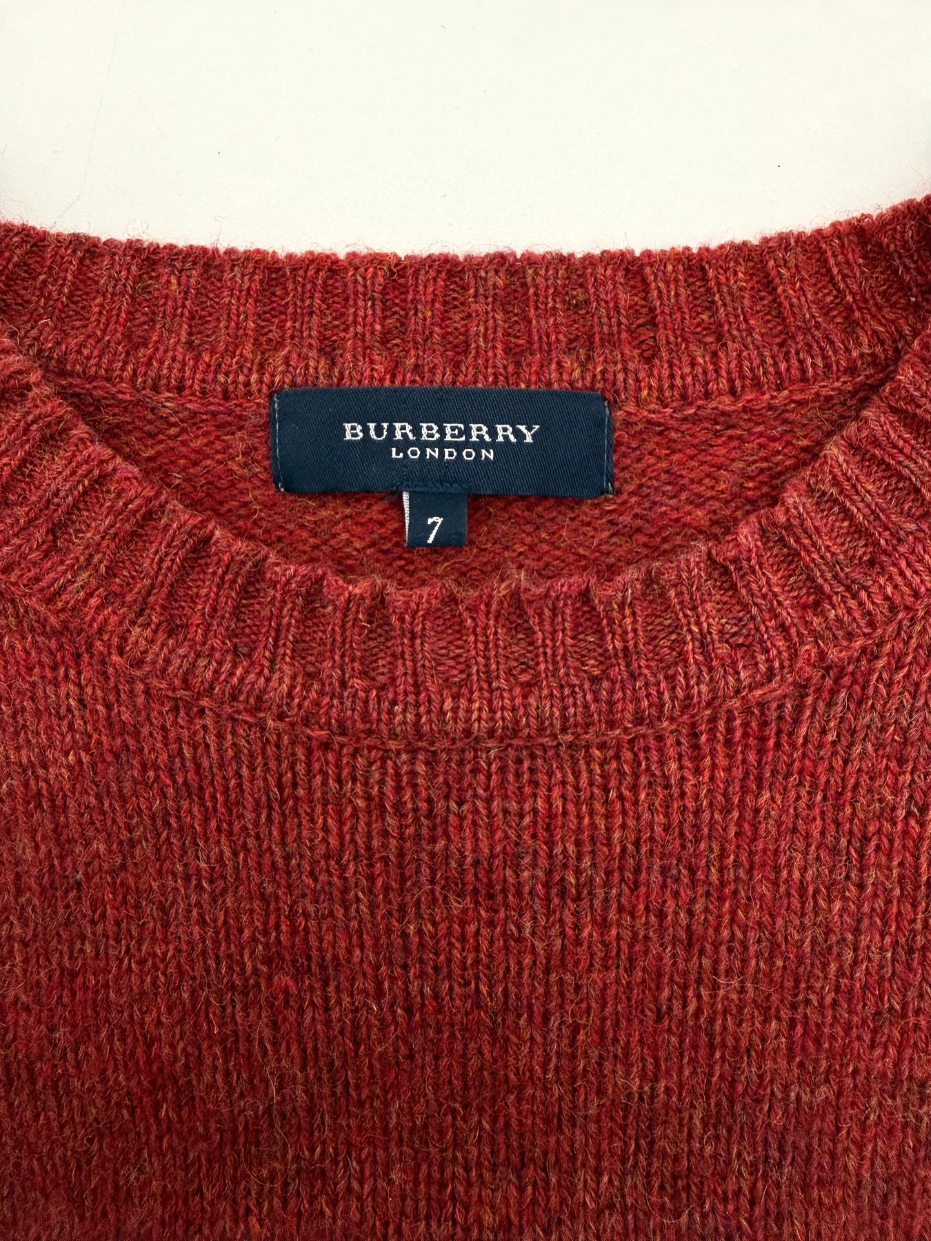 Jersey de lana Burberry color rojo talla 7 (L) en muy buen estado (prácticamente nuevo con poco uso, puño de la manga derecha un poco abierto). Gran calidad de lana.