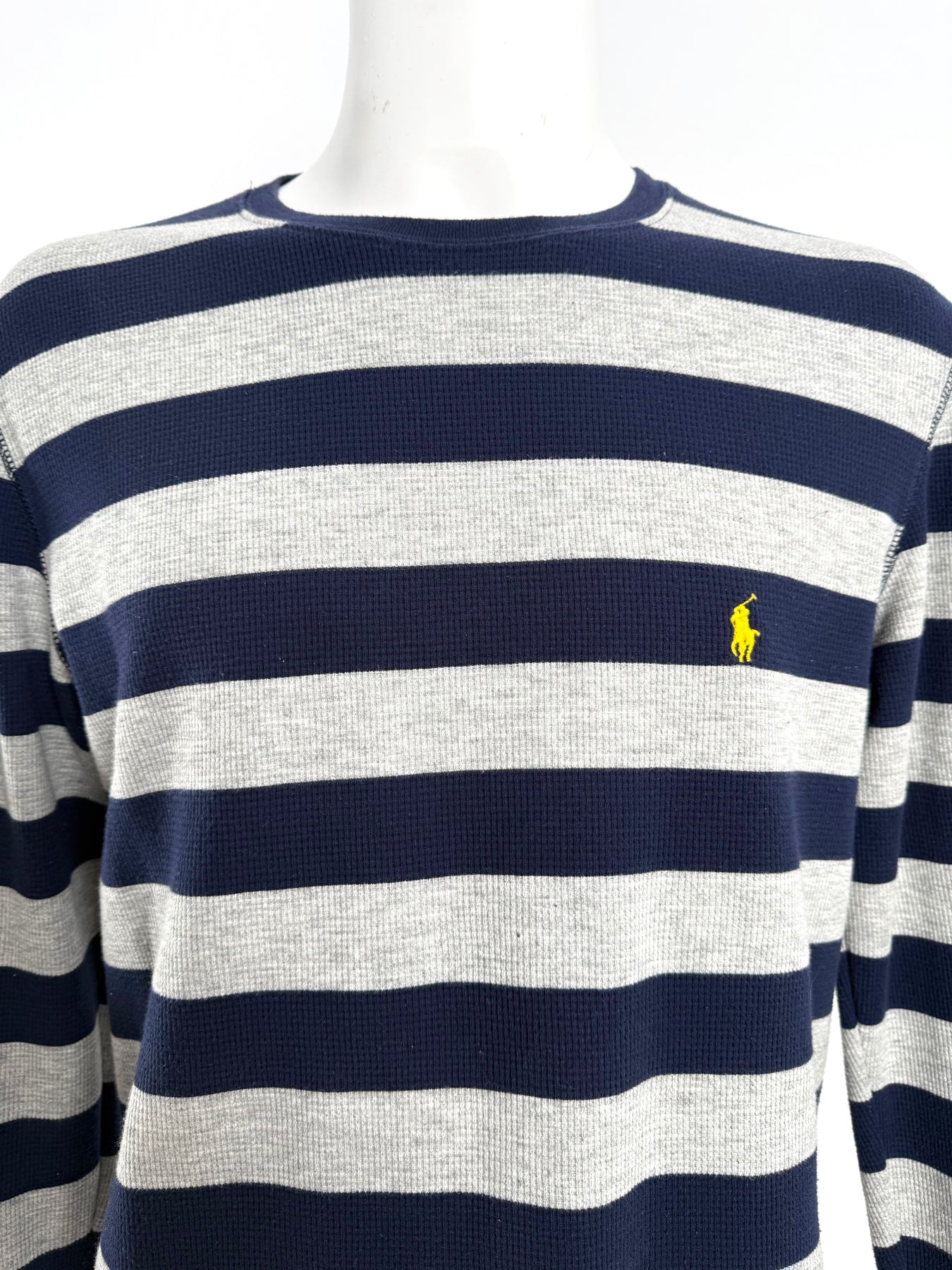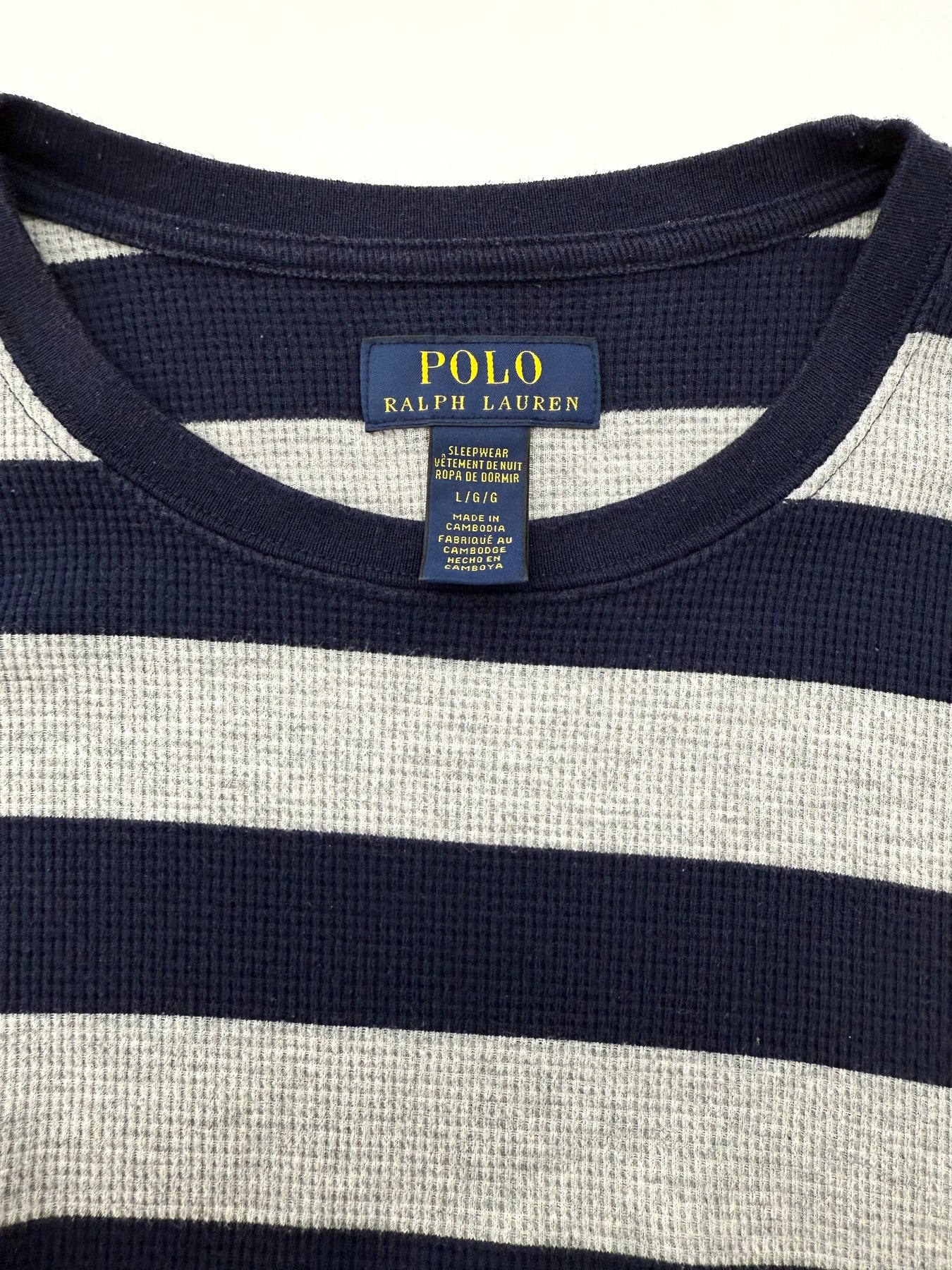 Jersey de algodón Ralph Lauren color gris y azul oscuro talla (L pequeño, puede usarse como una M) en perfecto estado (prácticamente nuevo con poco uso). Gran calidad de algodón y poliéster.